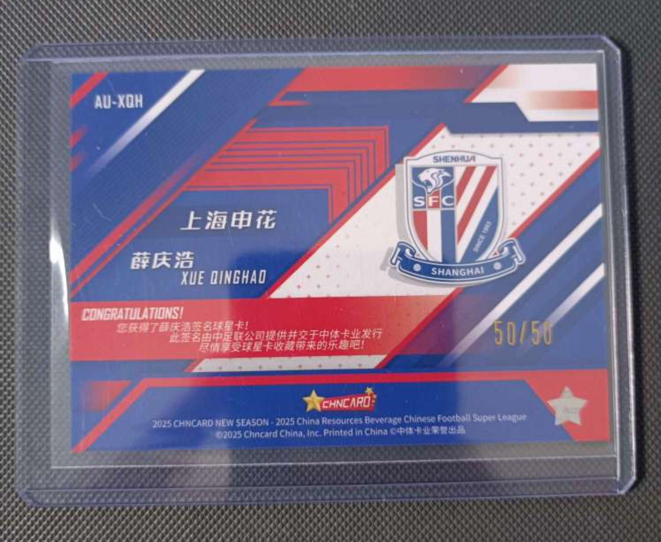 2025 中体卡业 CSL NEW SEASON(新赛季) Xue Qinghao 薛庆浩 中超新赛季 签字 上海申花 50/50编 尾编 铜折 折射
