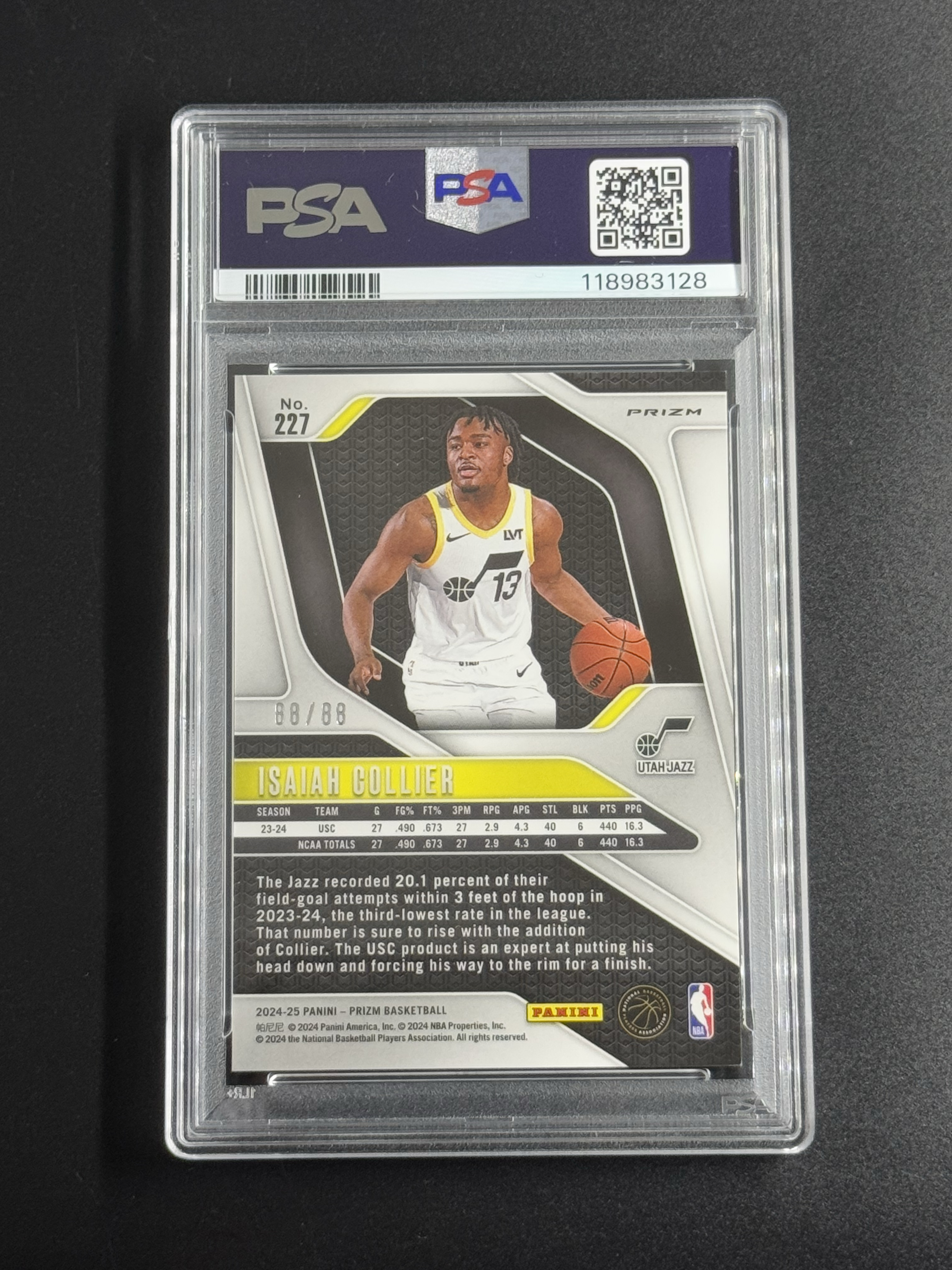 2024-25 Panini Prizm Isaiah Collier RC 【小花猪代卖】爵士 新秀RC 以赛亚 科利尔 88/88编 尾编 红龙折 龙纹折 PSA10分 完美卡品 评级卡(air
