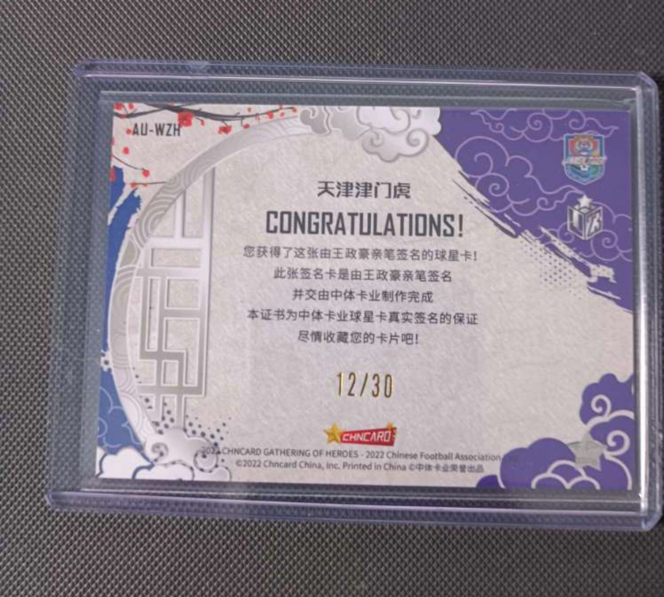 2022 中体卡业 CFA CUP(足协杯群英谱) Wang Zhenghao 王政豪 签字 天津津门虎 12/30编 银折 折射
