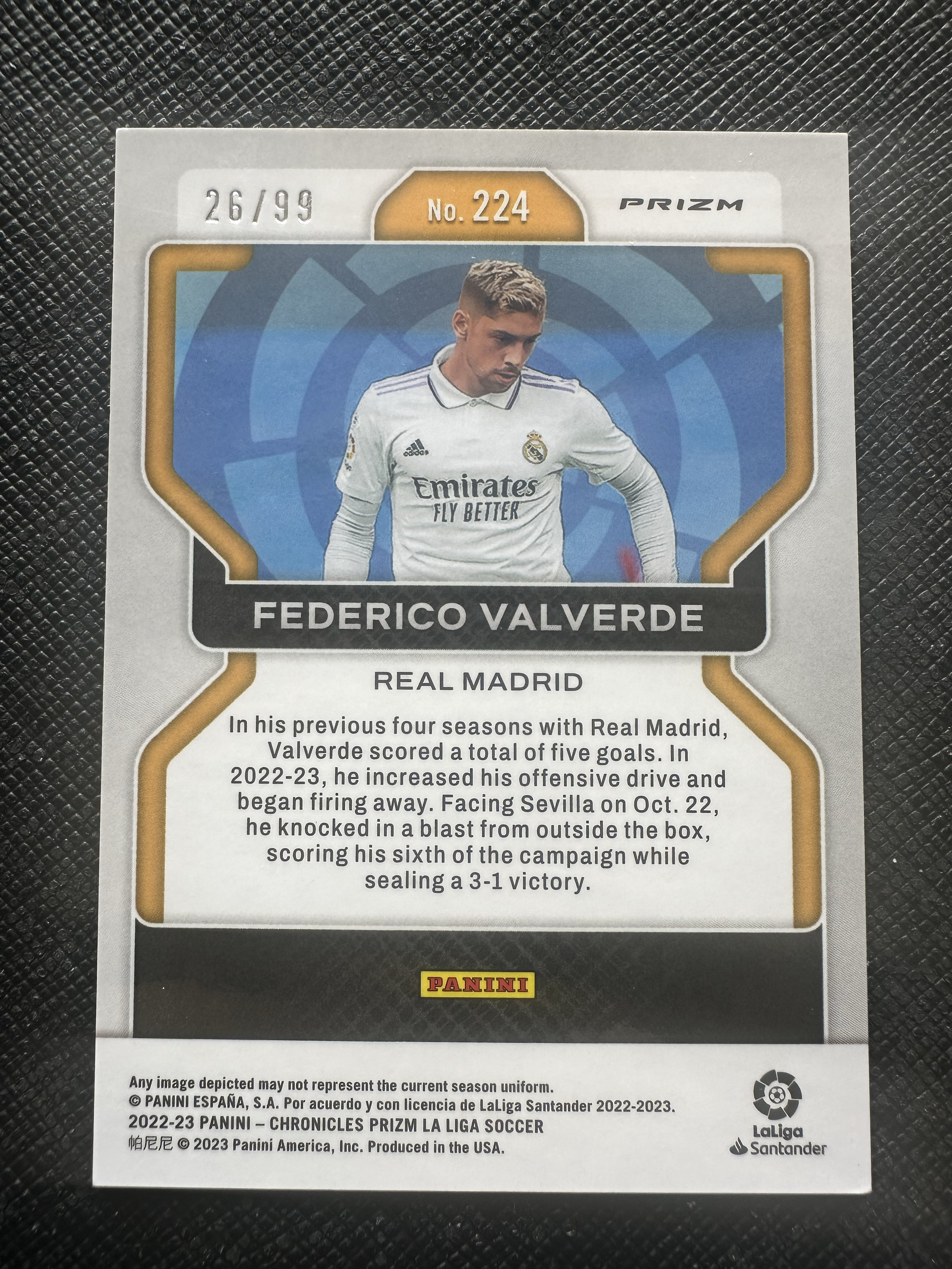 2022-23 Panini Chronicles Prizm Federico Valverde 巴尔韦德 皇家马德里 乌拉圭 典礼中场组合 中场大师 投资收藏必备 99编 26/99 稀缺Pz