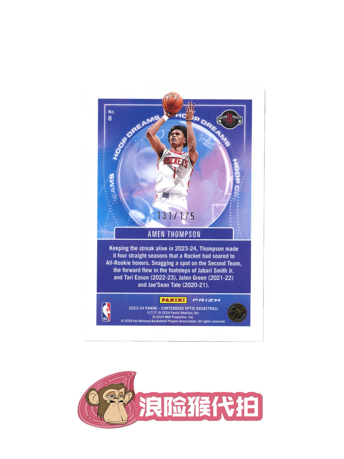 【浪险猴🐒代拍】Amen Thompson 阿门汤普森 2023-24 Contenders Optic 球票 RC新秀 175编 特卡 红碎冰折射 火箭队 卡品如图 黎明