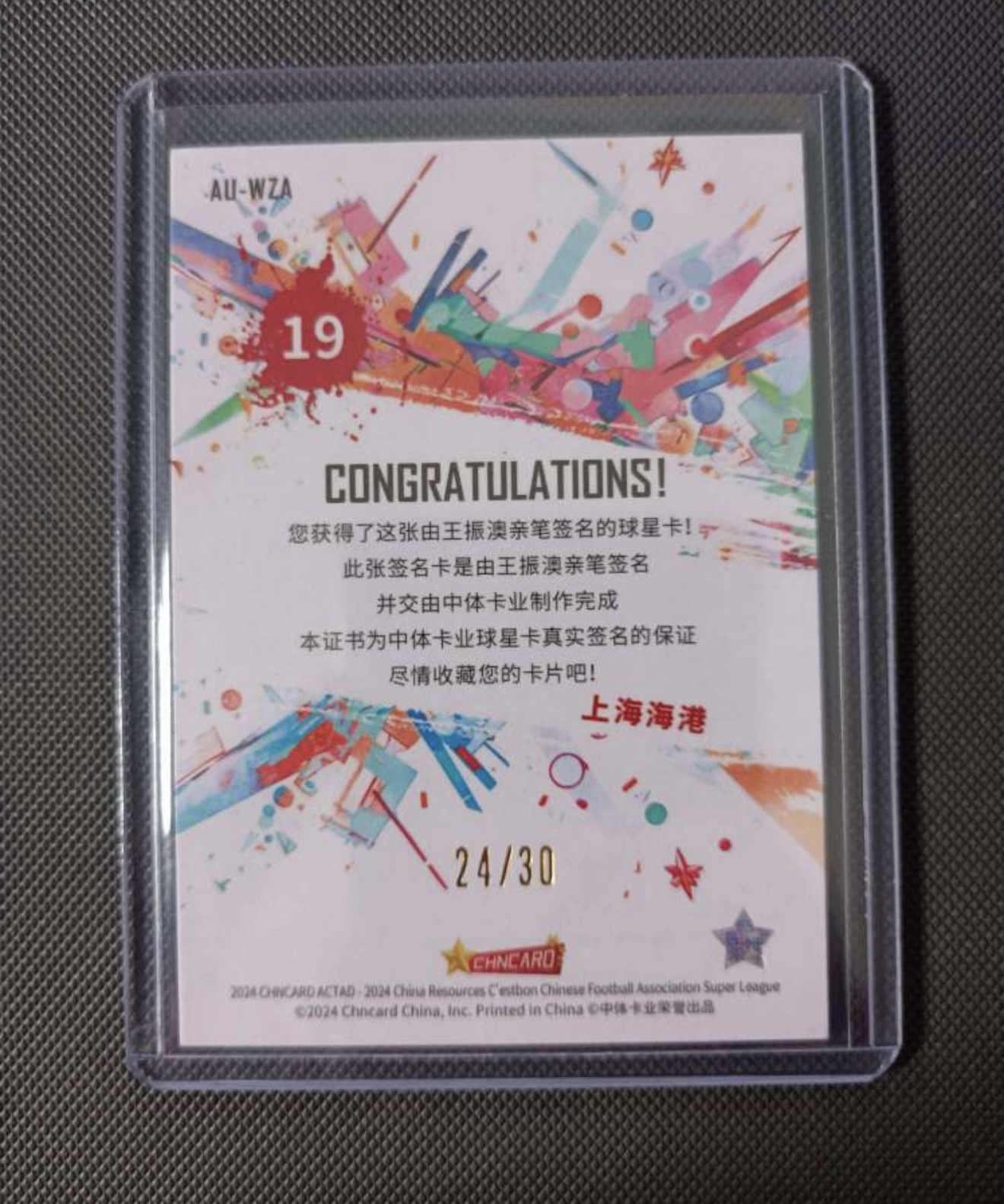 2024 中体卡业 CSL ACTAD(渲染) Zhen'ao Wang 王振澳 签字 上海海港 24/30编 银折 折射