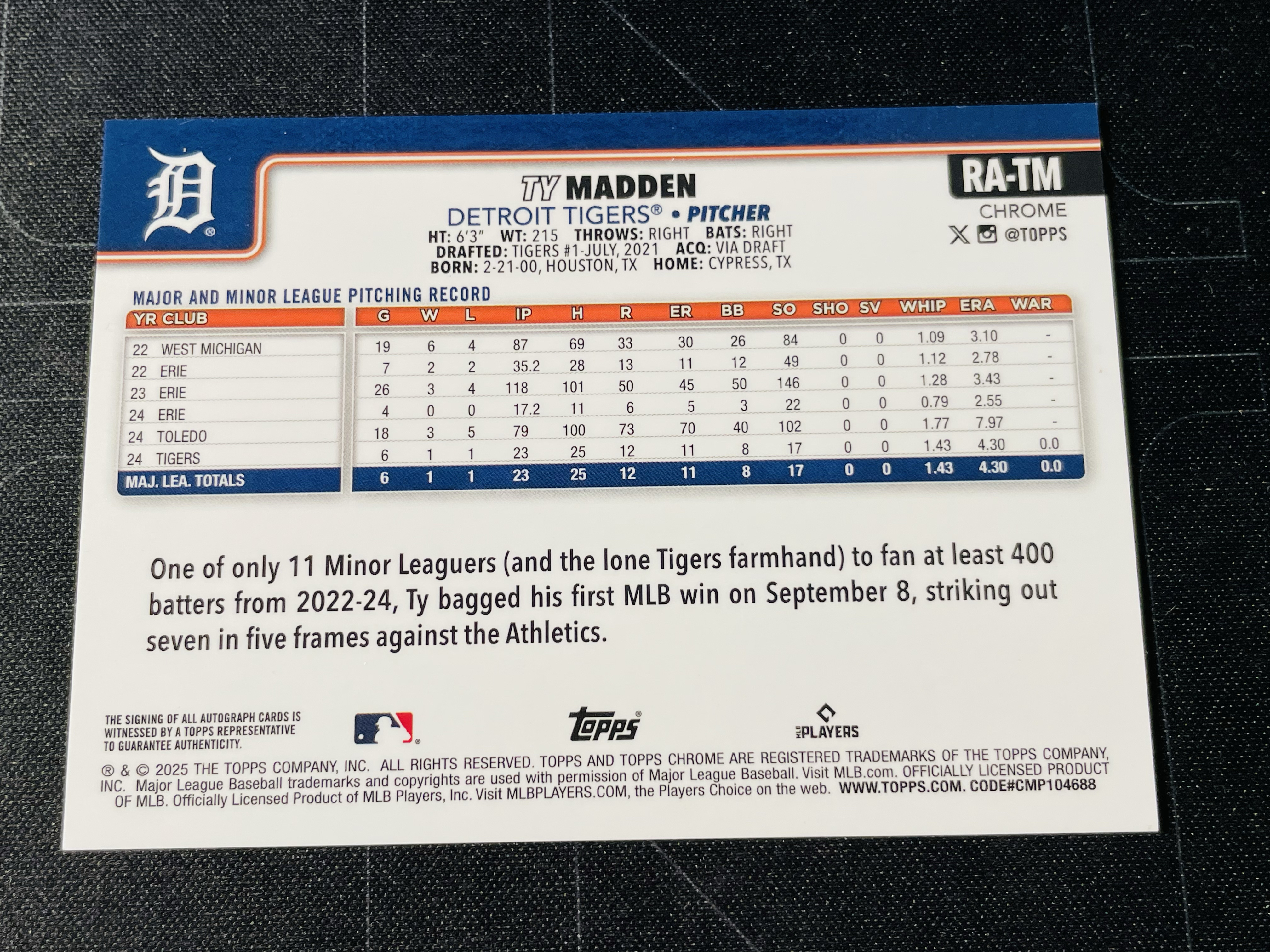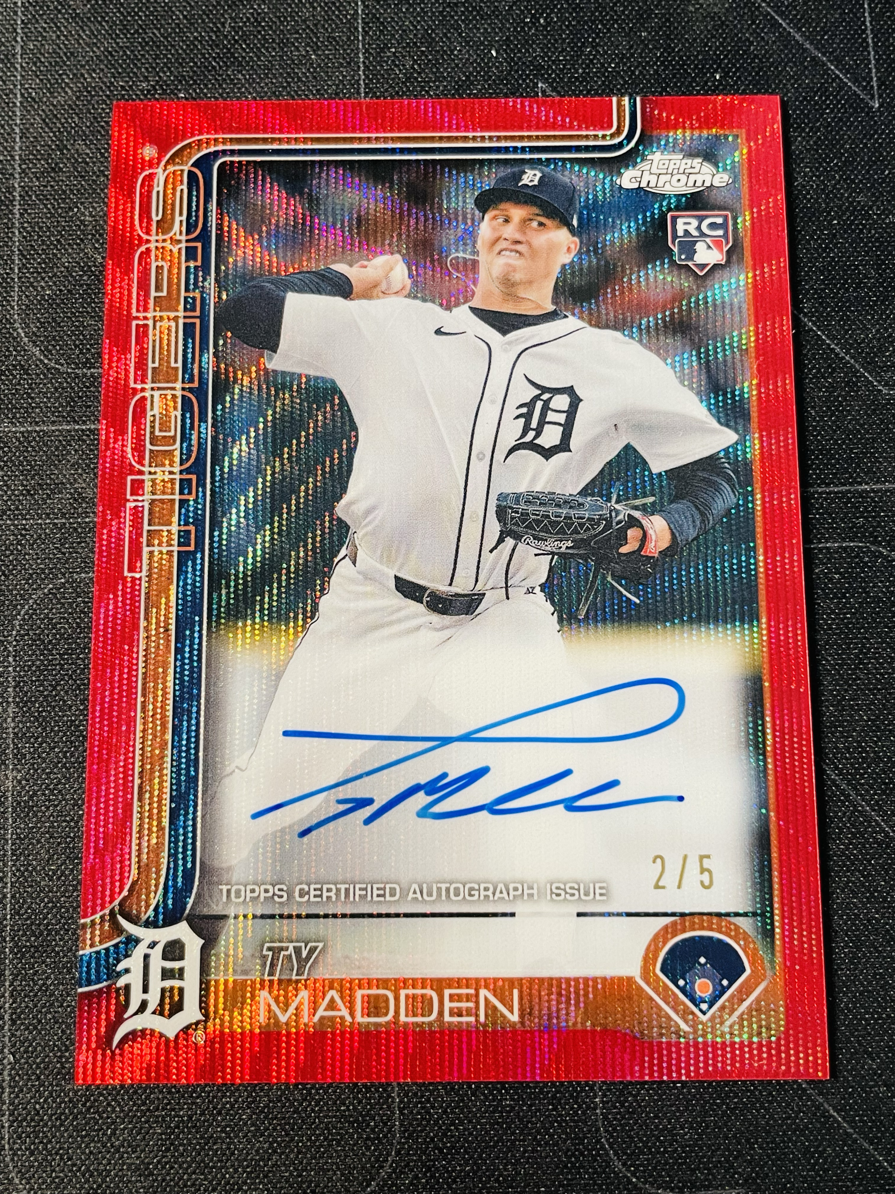 2025 Topps Chrome TY Madden RC 【MJ23棒球】MLB美职棒联盟 TC 底特律老虎 泰 梅登 2/5编新秀签字 卡签 超低编限量 红折折射 卡品如图 好嗨