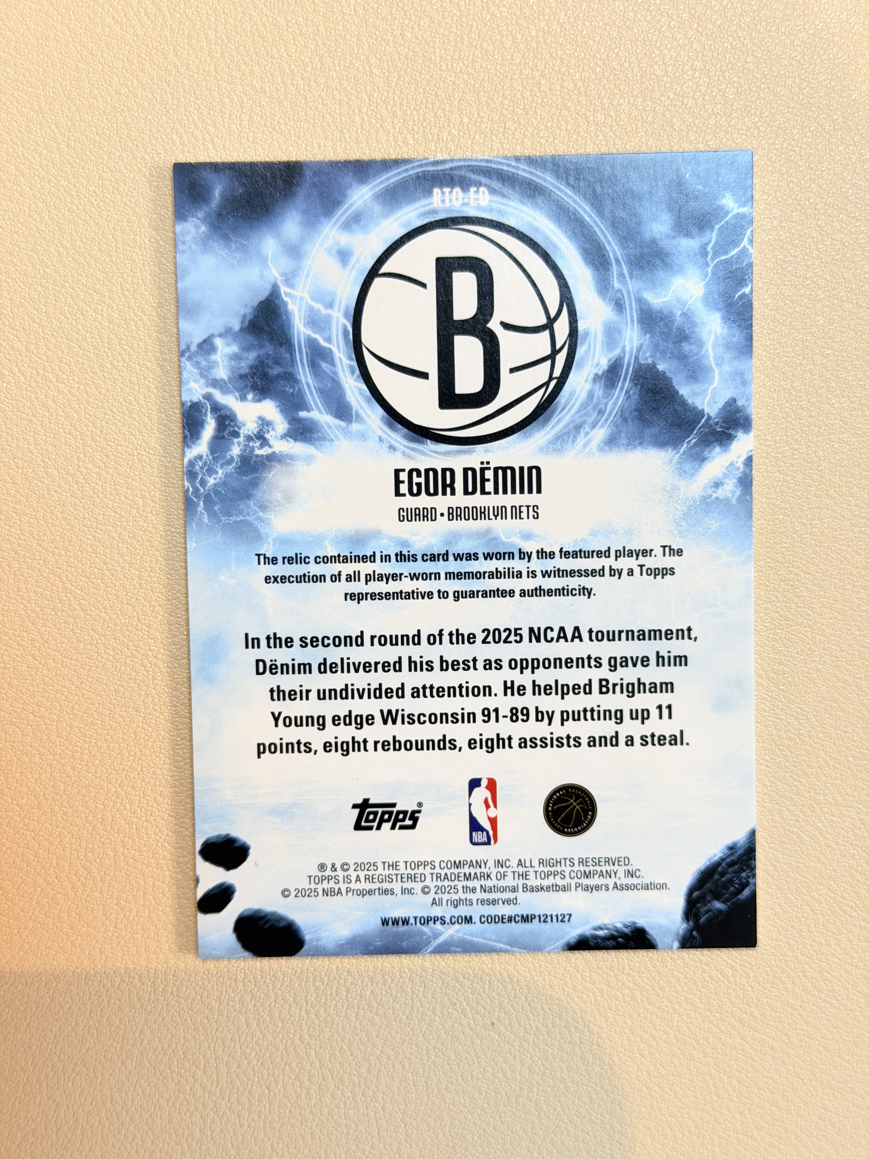 2025 Topps flagship Egor Demin RC 篮球 叶戈尔 杰明 RISE 特卡 71/99 编 球衣物料切割 实物 新秀 卡品如图