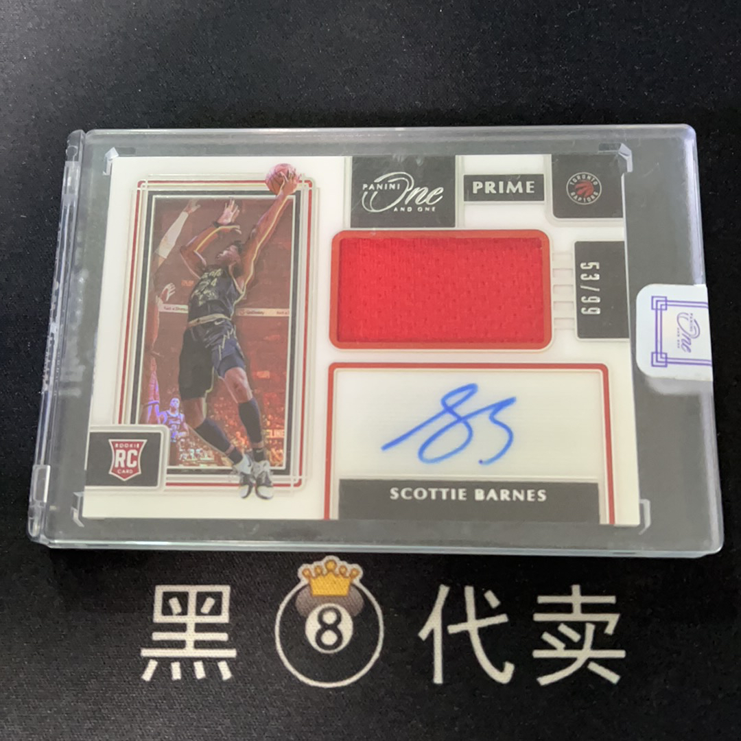 72【黑8代卖】2021-22 Panini One and One系列 Scottie Barnes 斯科蒂 巴恩斯 RC 新秀 签字 卡签 球衣切割 53/99编 RJA 原封砖【Jyan-36】