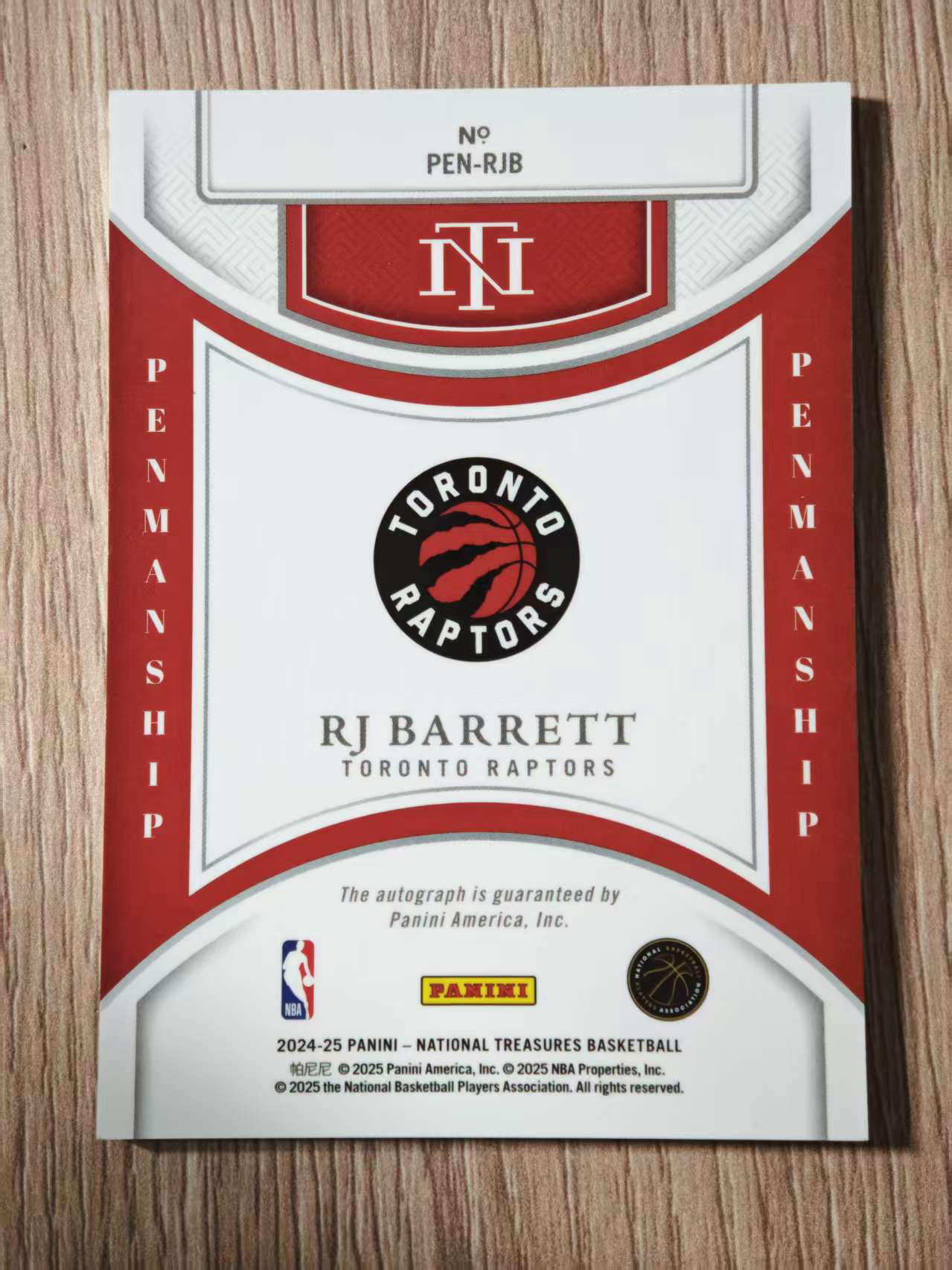 2024-25 Panini Immaculate R.J. Barrett 国宝 RJ 巴雷特 Penmanship SP签字 卡签 猛龙 25编