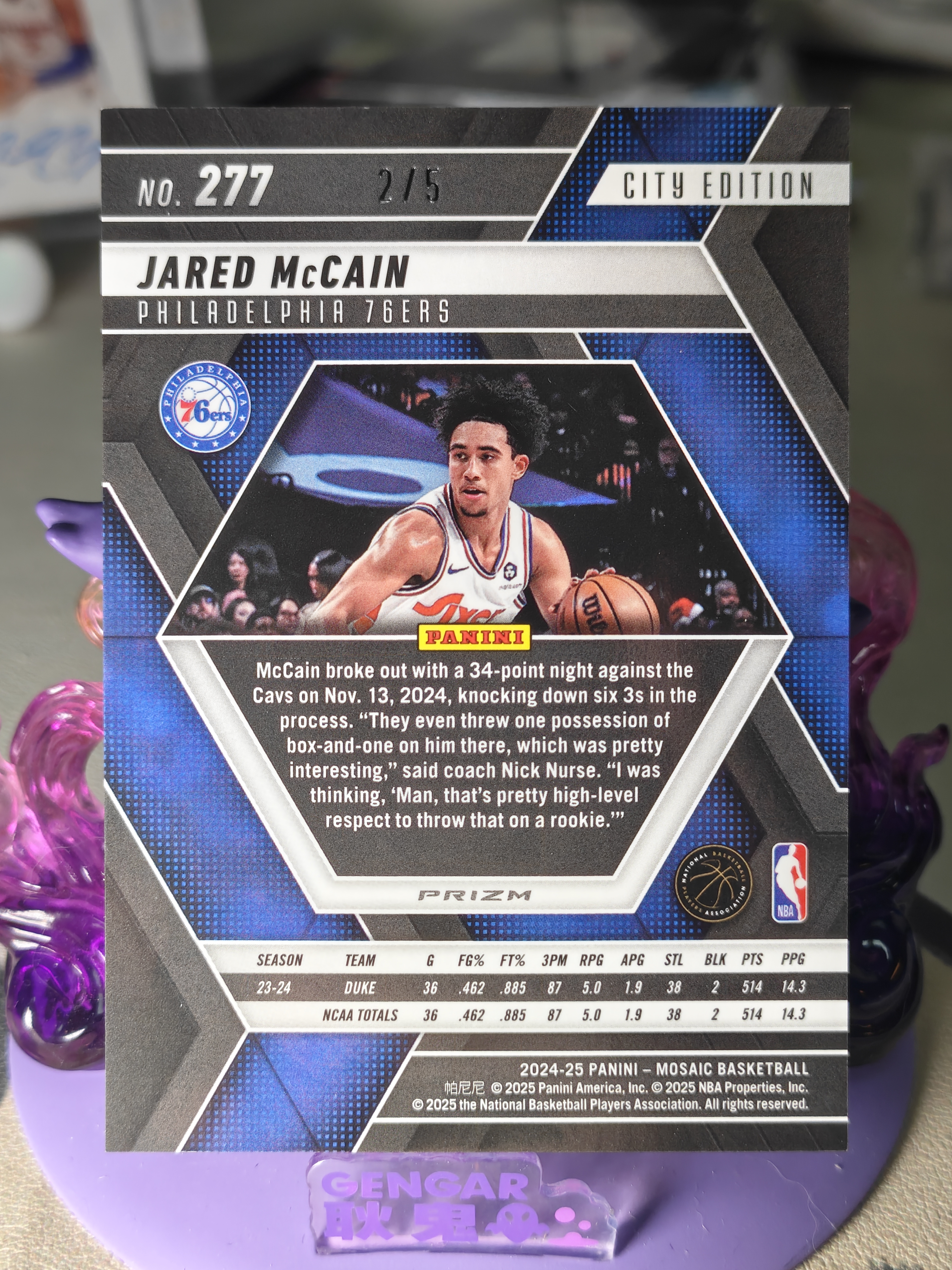 2024-25 Panini Mosaic Jared McCain RC 马赛克 76人 马刺 贾里德 麦凯恩 魔仙哥 最佳新秀 2/5编 超低编 金闪折 金折 折射 base 微瑕如图 专收必备