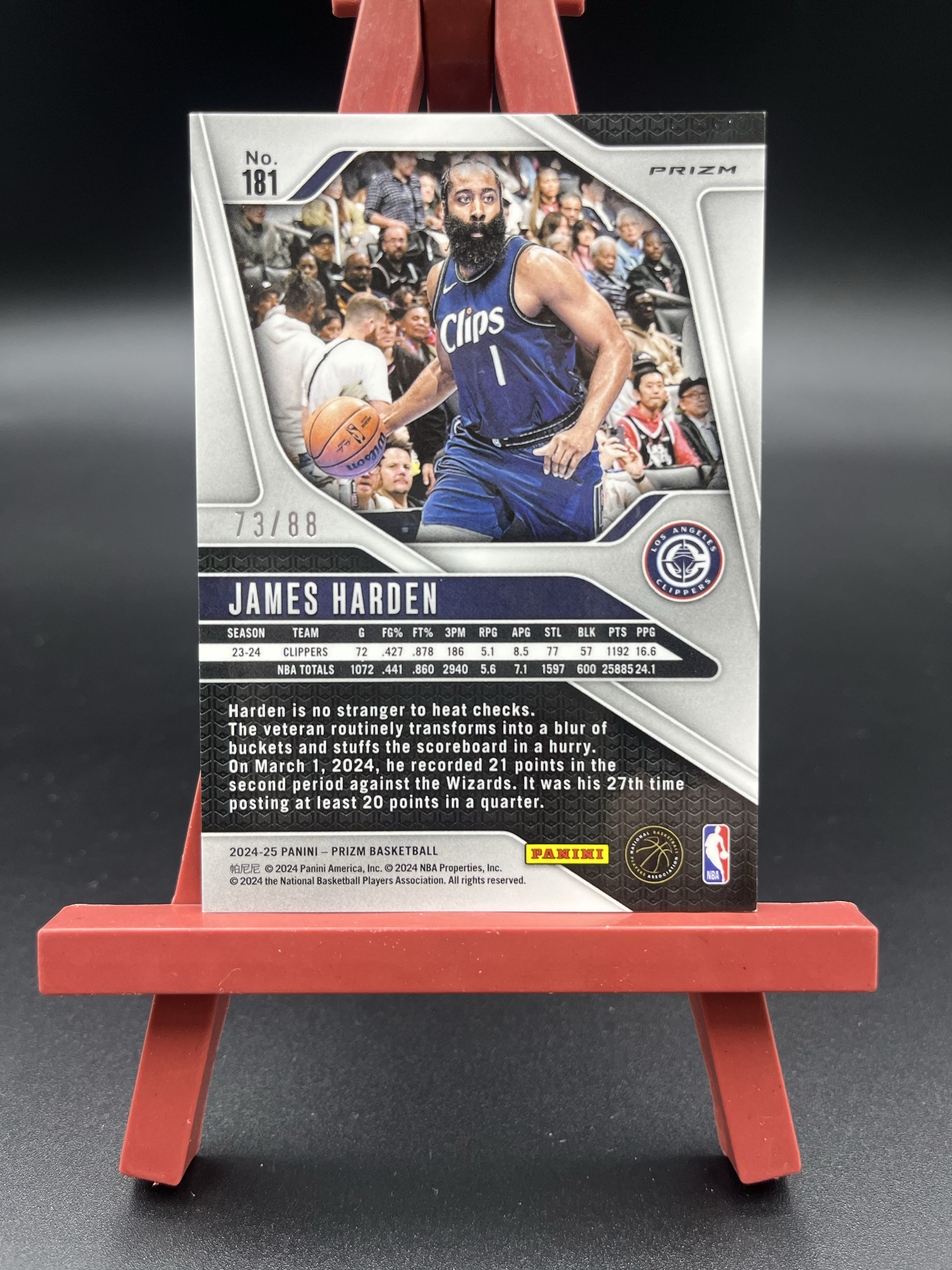 2024-25 Panini Prizm PZ James Harden 詹姆斯 哈登 大胡子 快船 折射 三色波纹折 73/88编 卡品如图【哈登彩虹套专场】