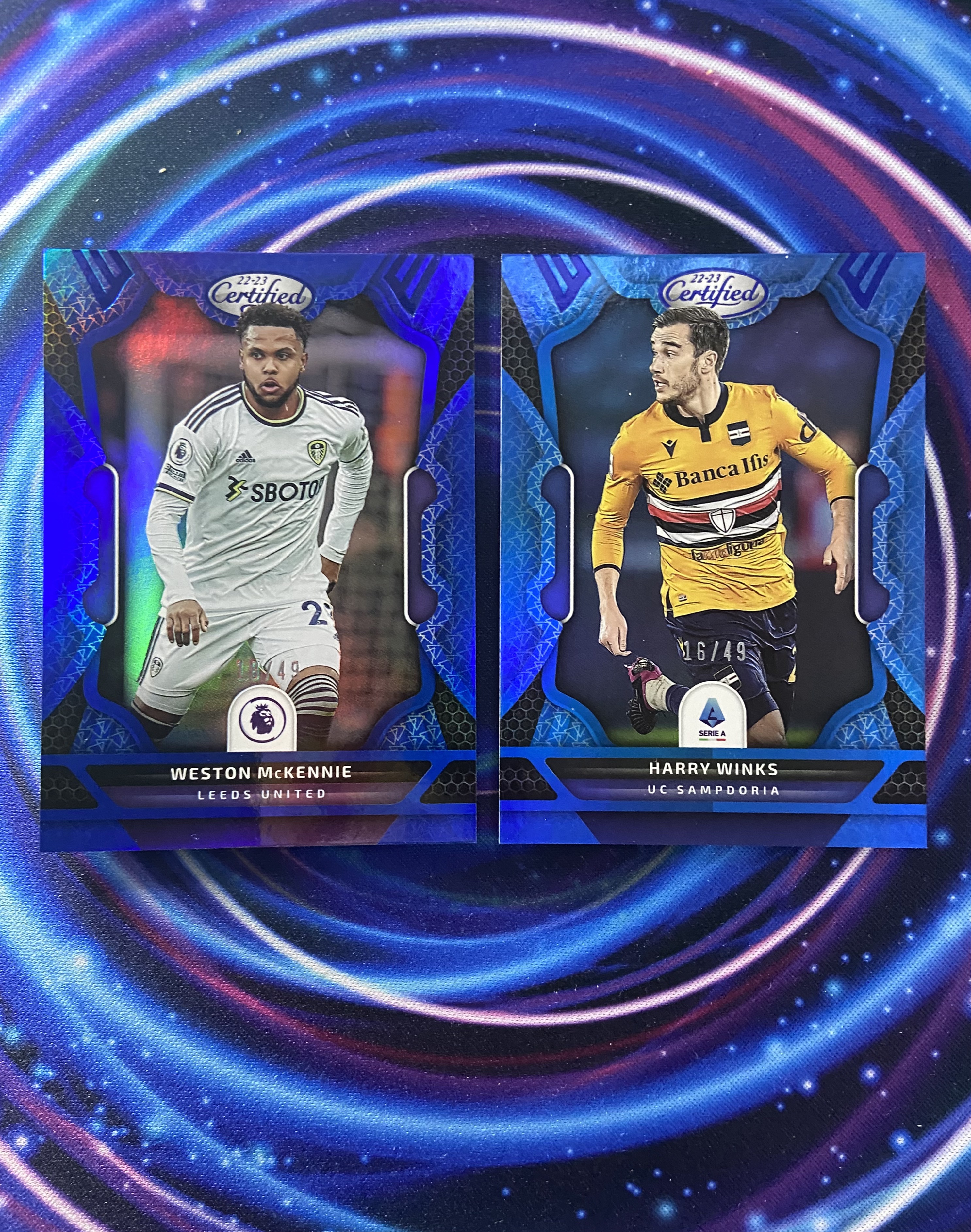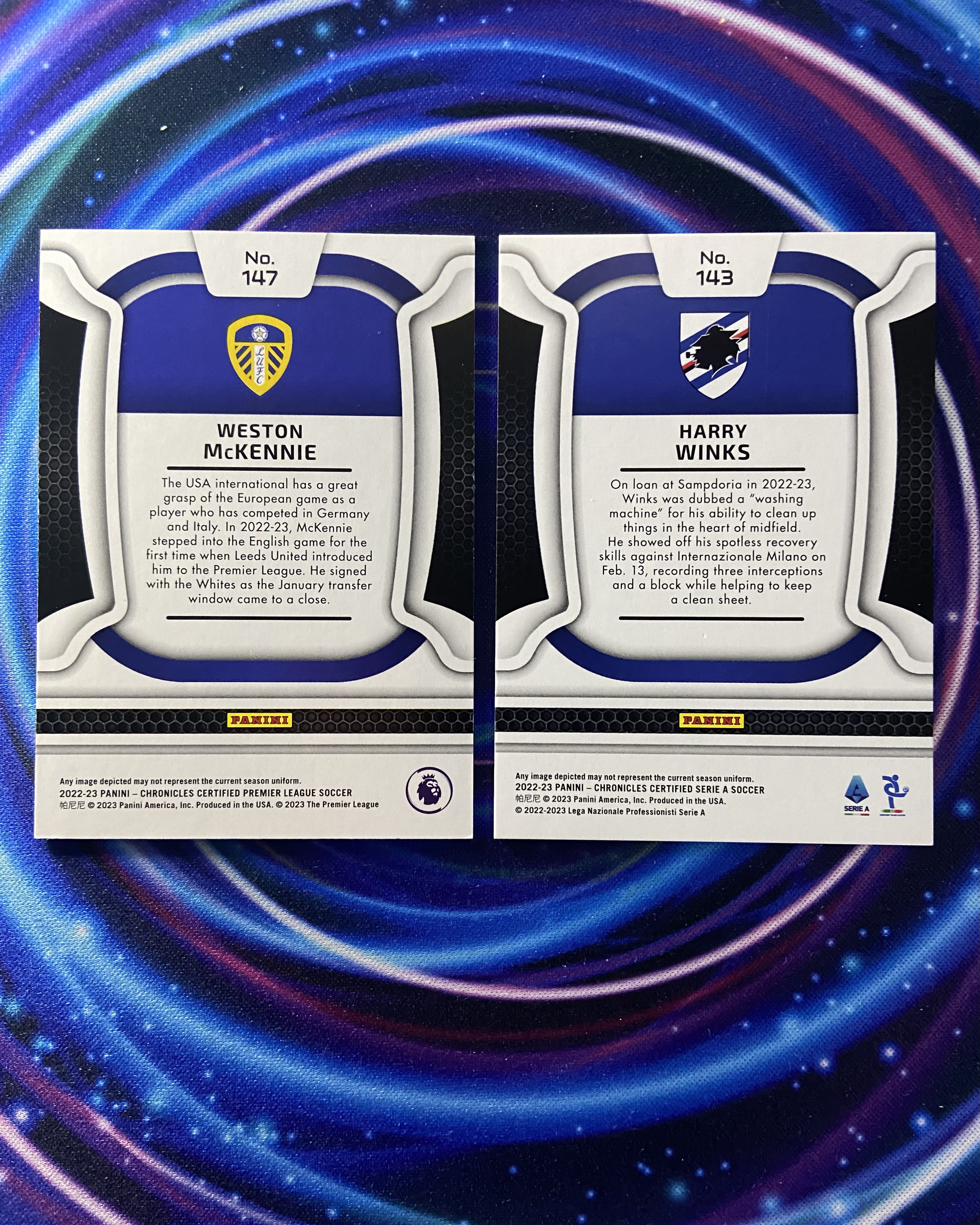 2022-23 Panini Chronicles Harry Winks 编年史 桑普多利亚 哈利温克斯 利兹联 麦肯尼 49编 蓝折 折射 卫生巾 插入 插放 lot【万卡收藏-BLZ】