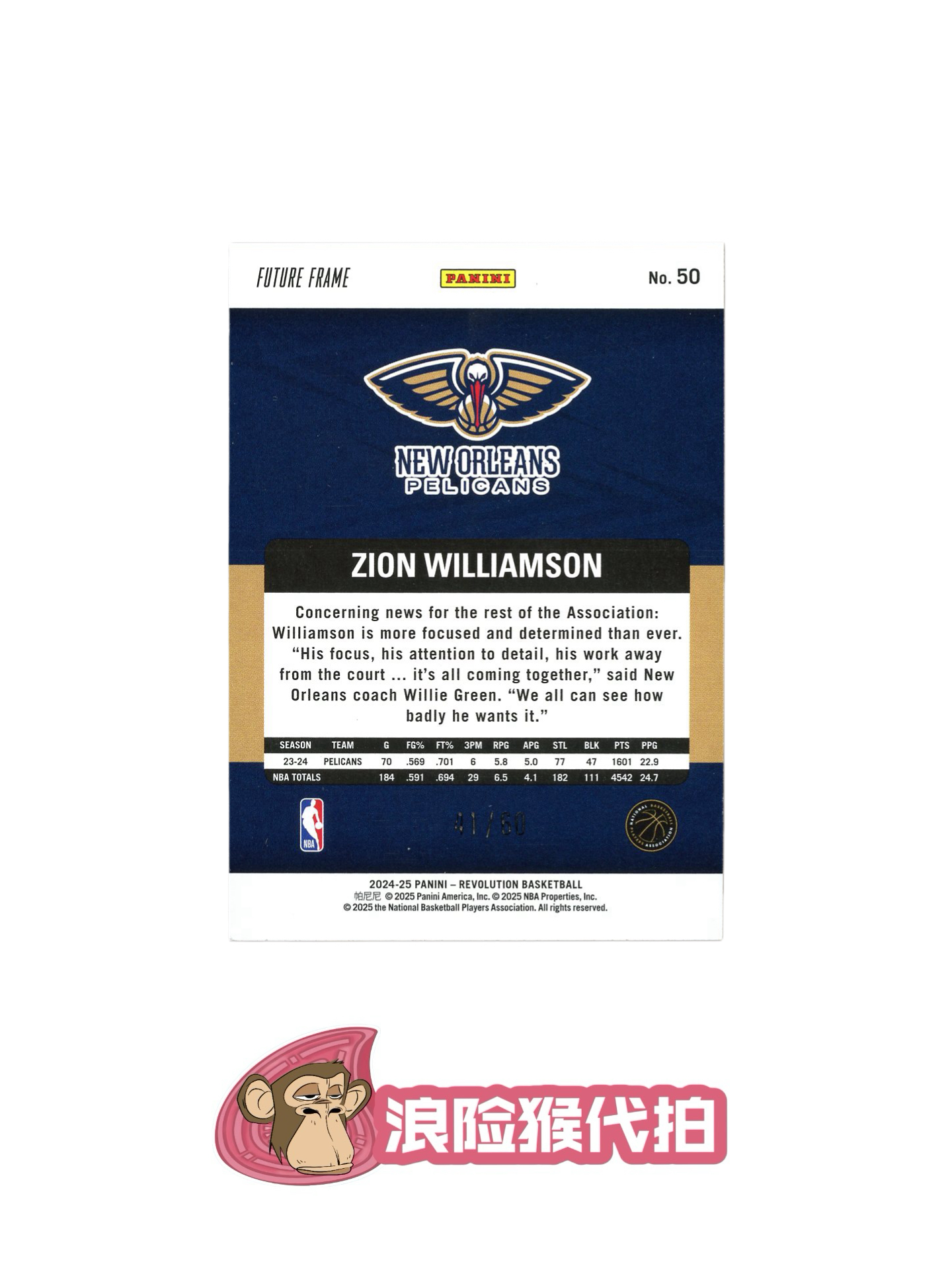 【浪险猴🐒代拍】2024-25 Panini Revolution Zion Williamson 革命 鹈鹕 锡安 威廉姆森 胖虎 折射 41/60编 实卡帅气 卡品如图 黎明