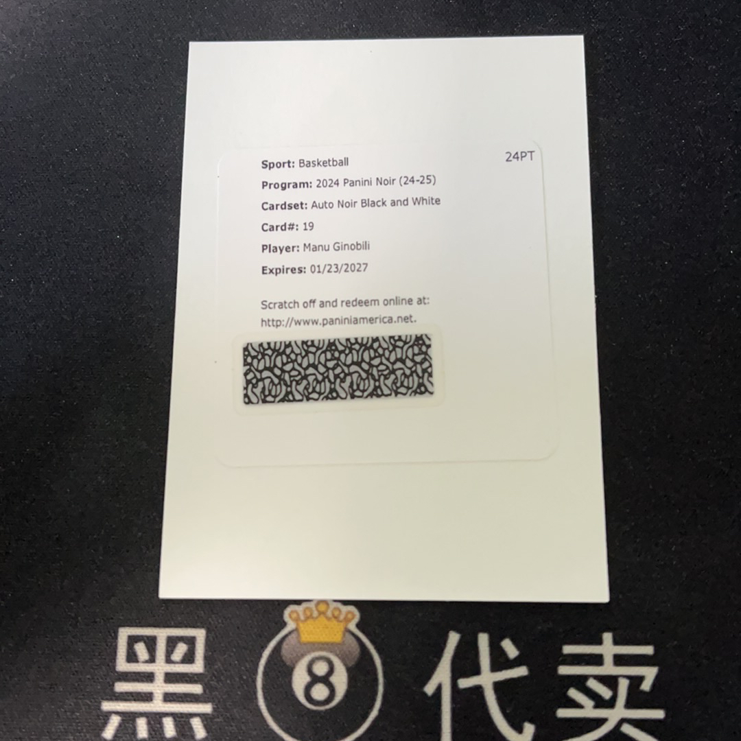 76【黑8代卖】2024-25 Panini Noir 诺尔 Manu Ginobili 马努 吉诺比利 妖刀 经典黑白 签字 卡签 99编 交换板不发码【玉龙哥-38】