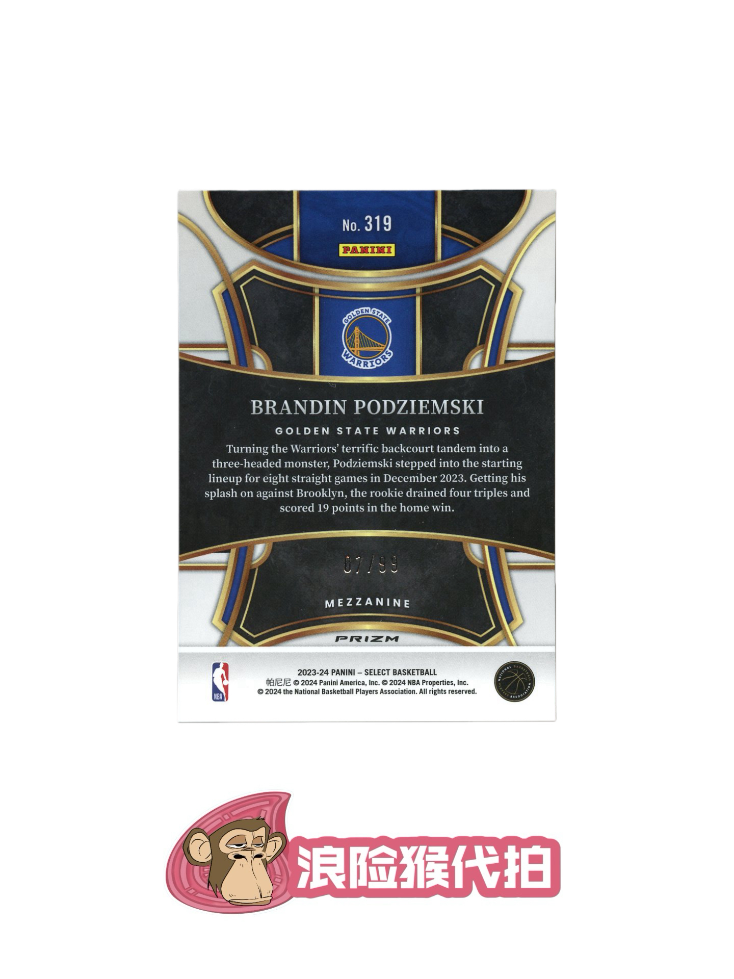 【浪险猴🐒代拍】2023-24 Panini Select Brandin Podziemski RC select 勇士 新秀 波杰姆斯基 07/99编 折射 卡品不错 专收必备 黎明