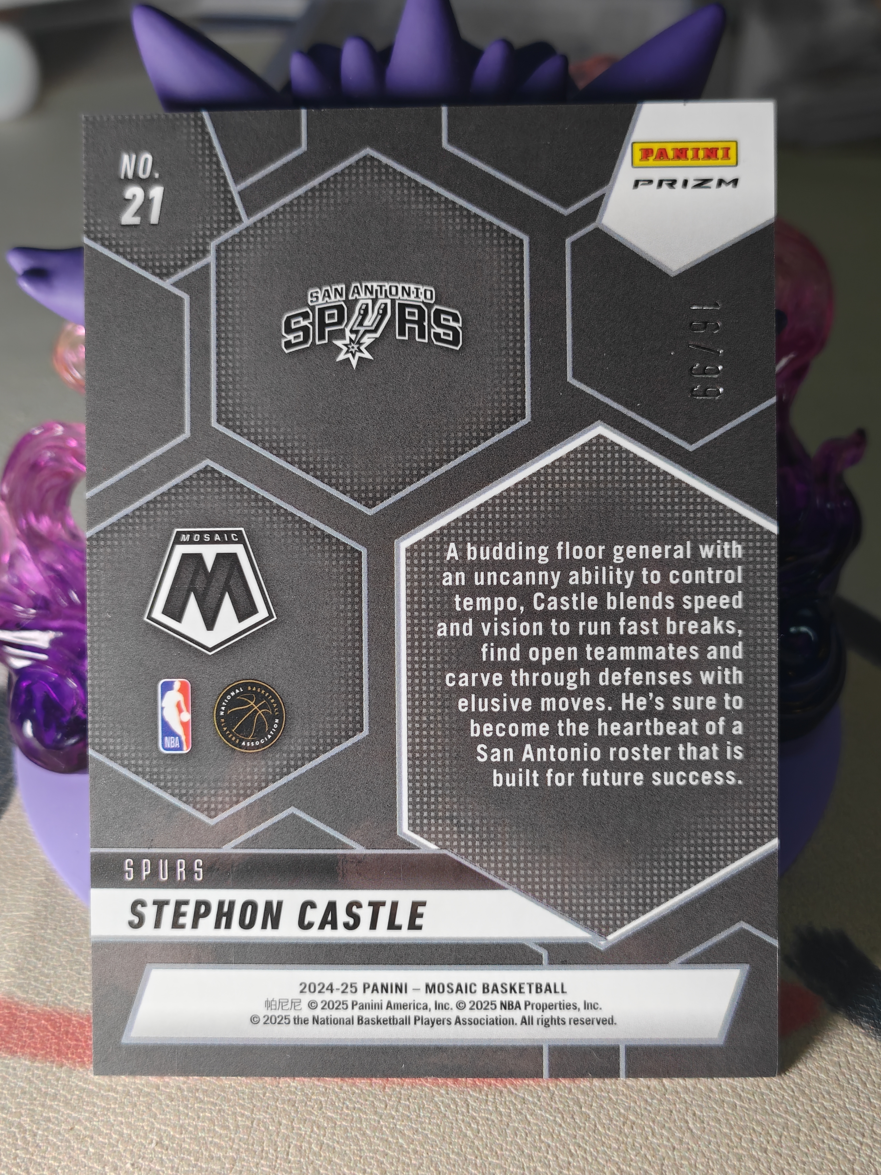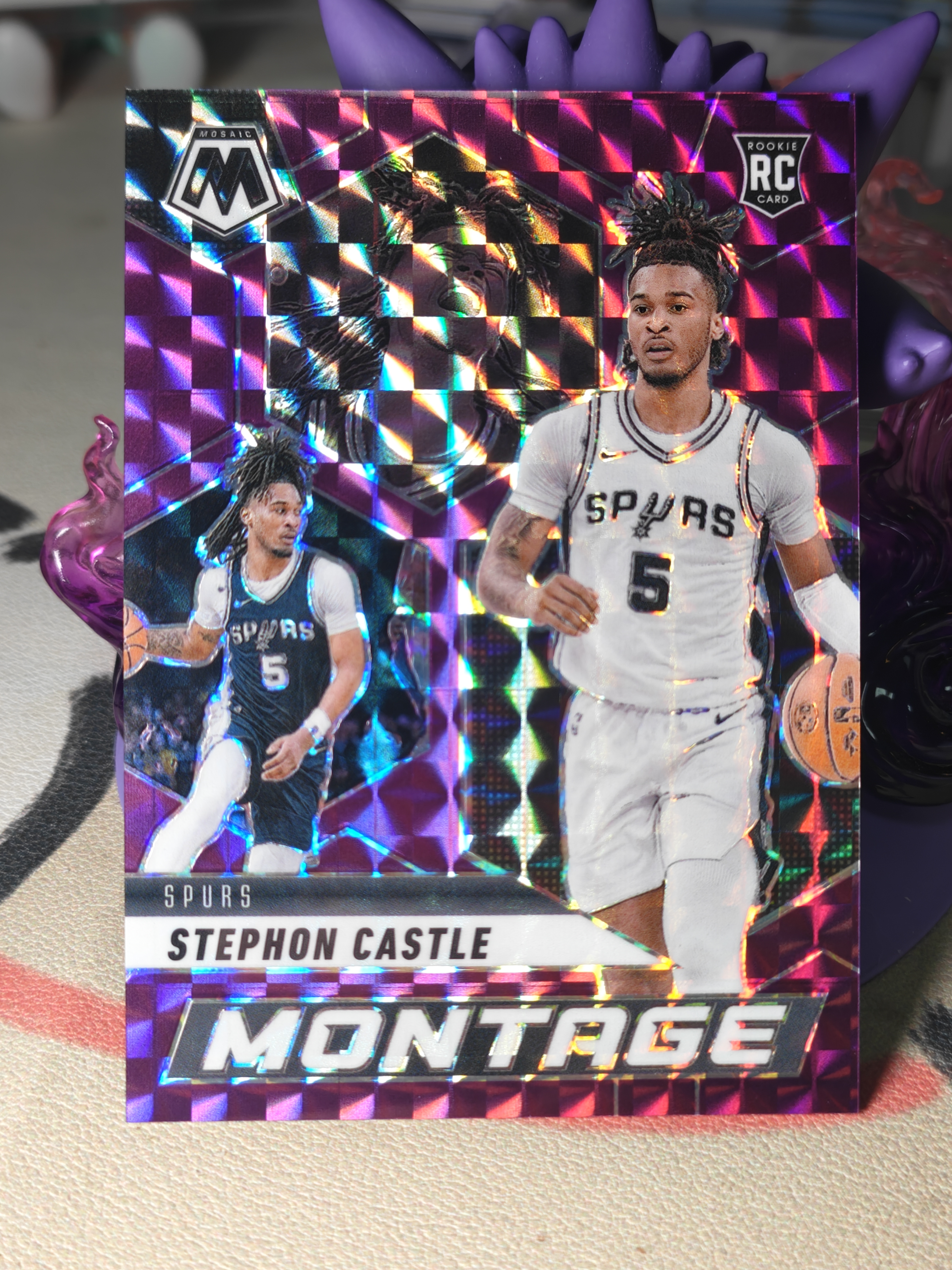 2024-25 Panini Mosaic Stephon Castle RC 马赛克 马刺 斯蒂芬卡斯尔 城堡哥 新秀 蒙太奇特卡 紫马赛克折 紫折 16/99编 收藏必备 卡品如图
