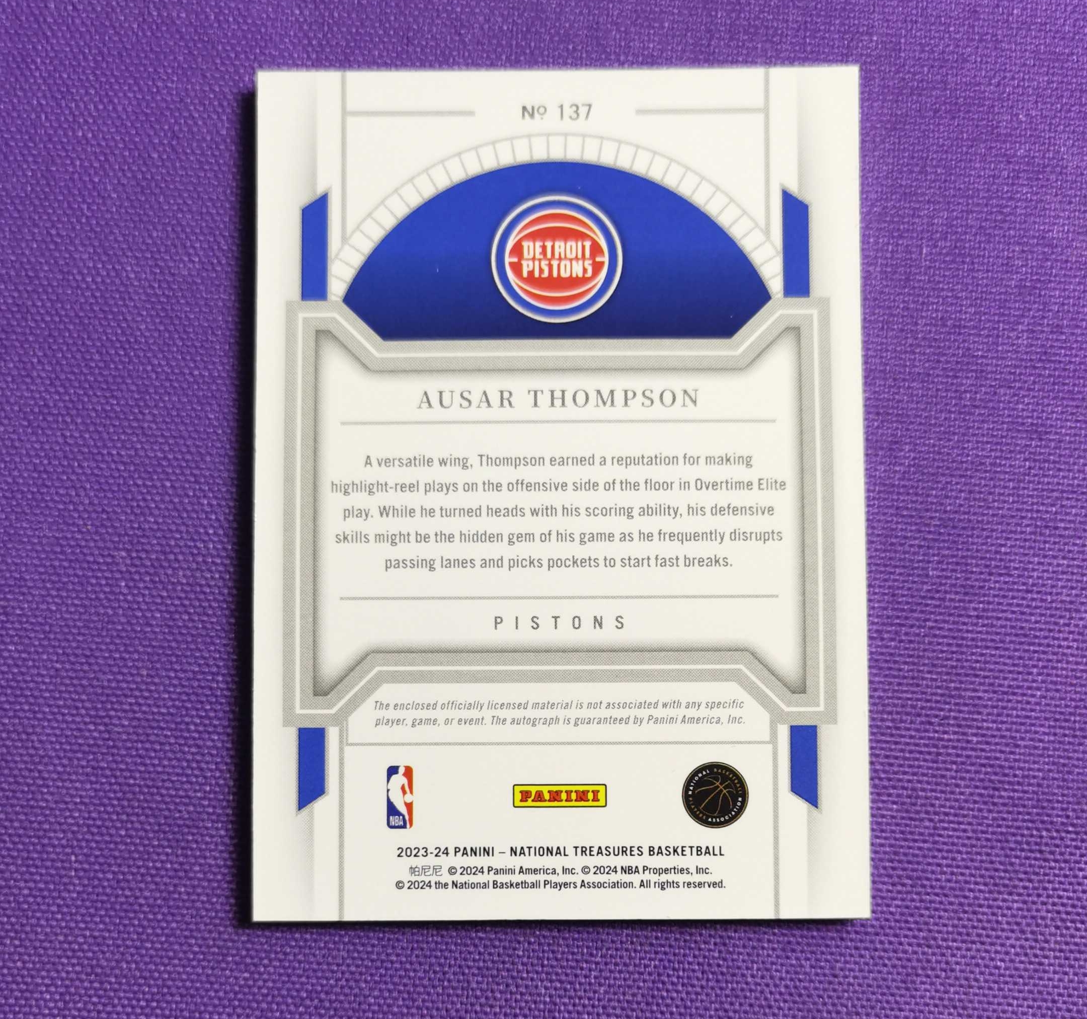 2023-24 Panini National Treasures Ausar Thompson RC 国宝 奥萨尔汤普森 新秀 RPA 20/49编 签字物料  球队核心 专收必备 卡品如图(程序猿)