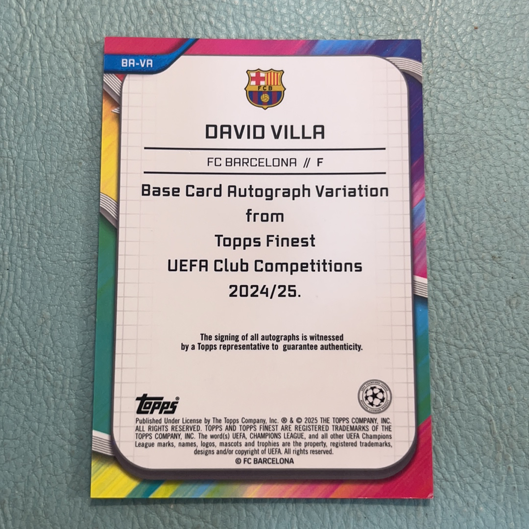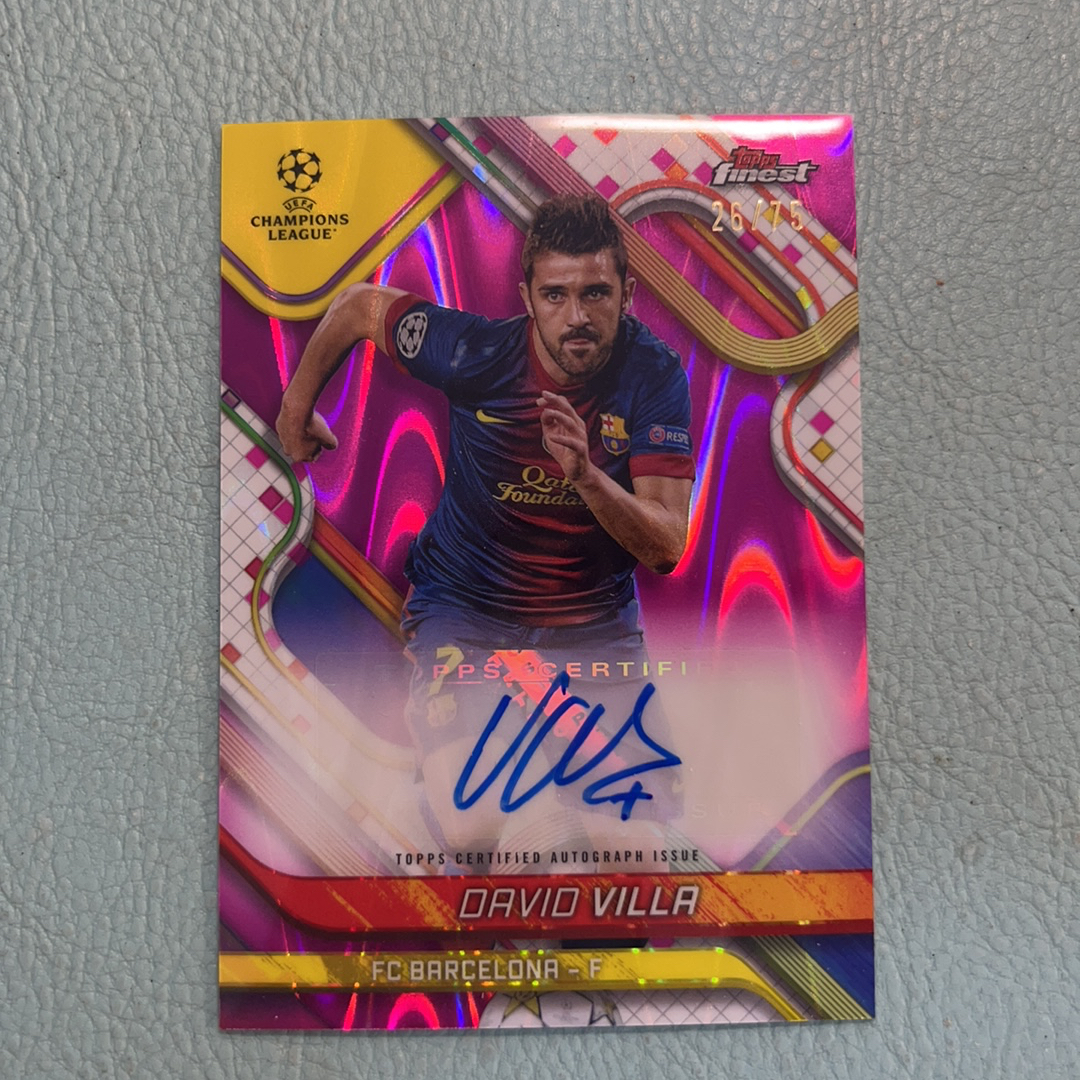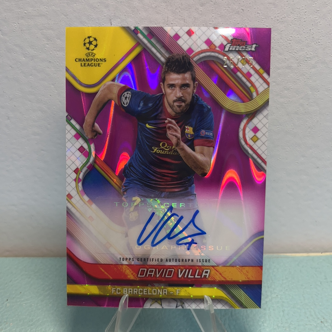 2024-25 Topps Finest DAVID VILLA 欧战 巴萨 大卫·比利亚 签字 75编 粉熔岩折 西班牙 瓦伦西亚 葫芦娃 传奇射手 卡品看图ccy16
