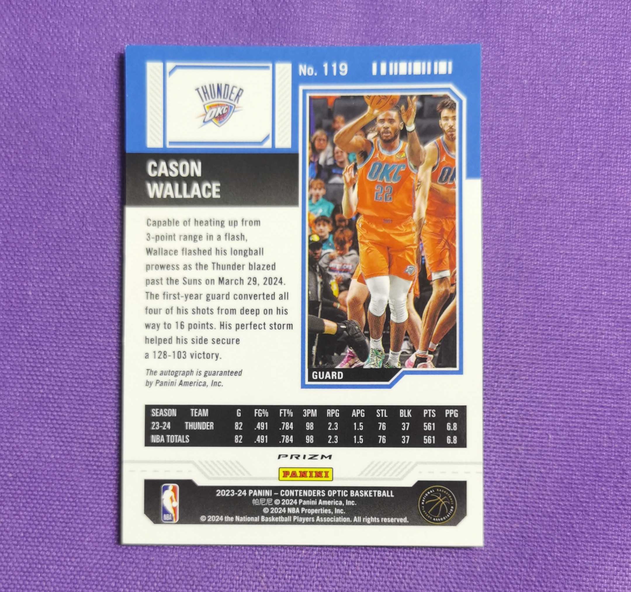 2023-24 Panini Contenders Optic Cason Wallace RC op球票 雷霆 卡森华莱士 新秀 银折 签字 防守基本盘 未来可期 卡品如图 凑套专收必备(程序猿)
