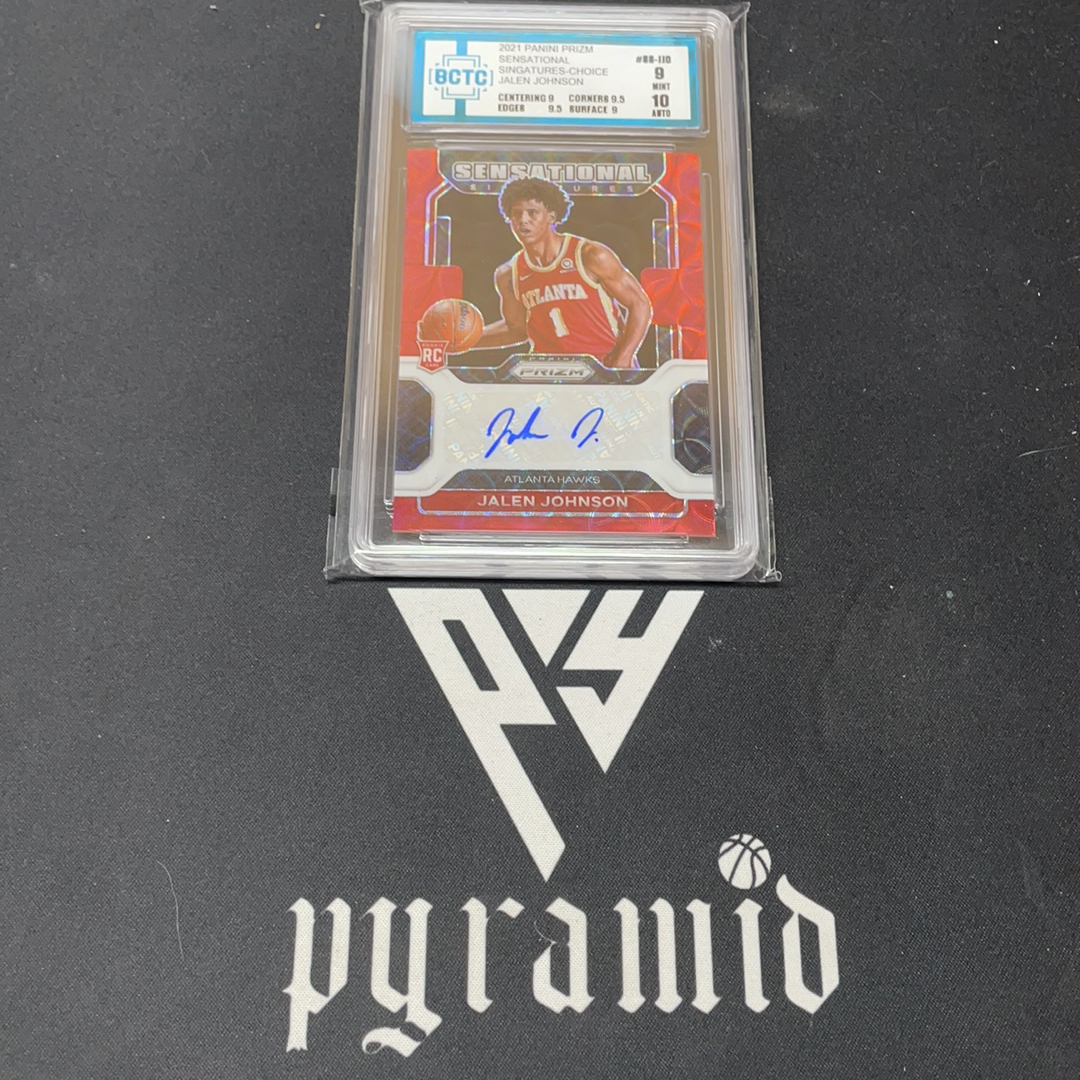 【Pyramid卡社】2021-22 Panini Prizm Jalen Johnson 杰伦 约翰逊 老鹰 新秀 rc 签字 Rookie SS签 RA 签字 红波纹折 BCTC评级10分