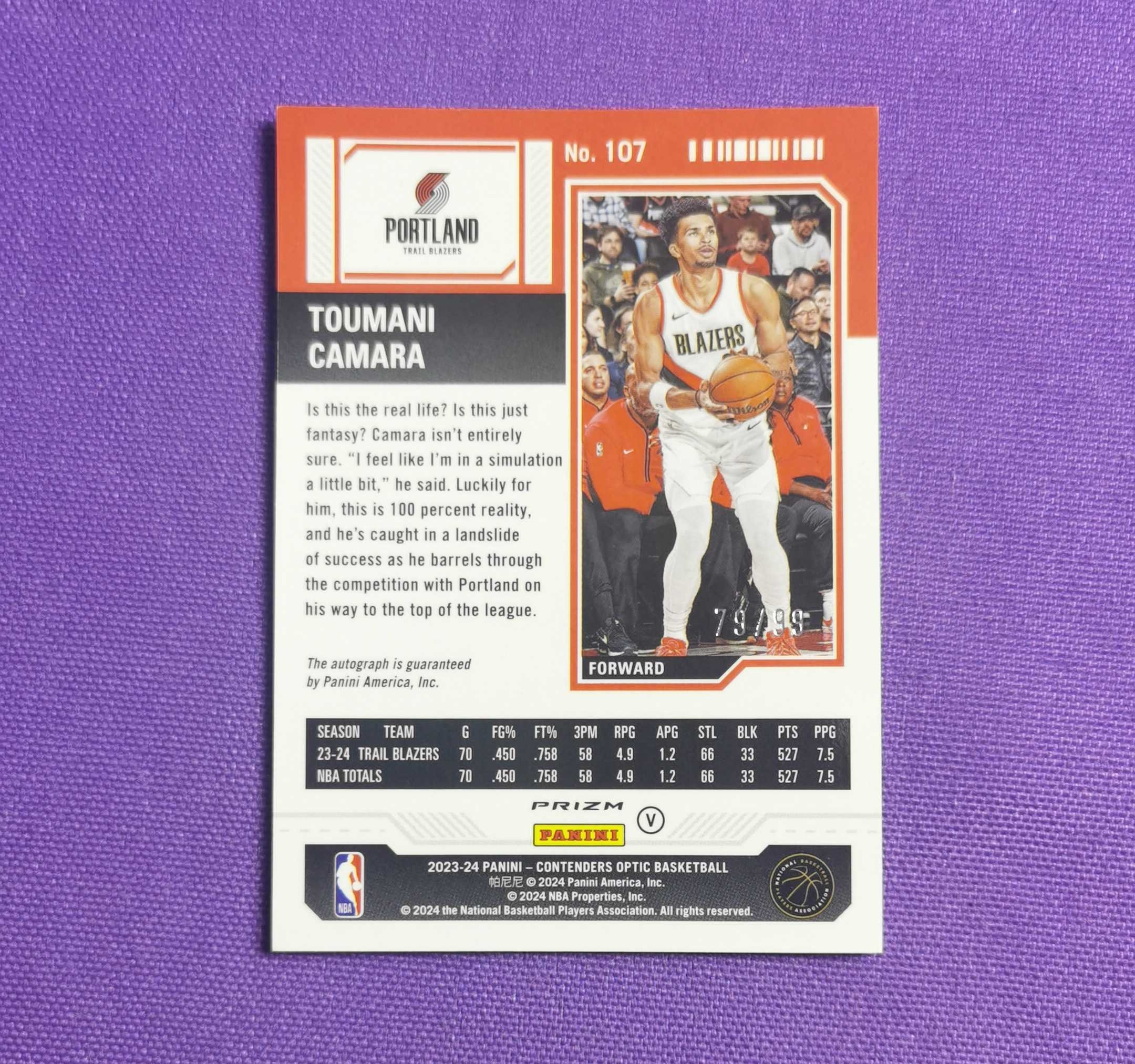2023-24 Panini Contenders Optic Toumani Camara RC op球票 开拓者 卡马拉 新秀 红折 79/99编 未来可期 球队主力 凑套专收必备(程序猿)