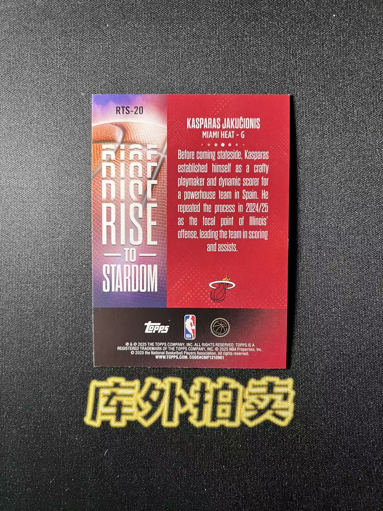 2025 Topps Topps Kasparas Jakucionis RC 热火 卡斯帕拉斯 雅库西奥尼斯 旗舰系列 新秀 250编 紫折 118/250编 特卡 带编 折射 卡品如图 Gn