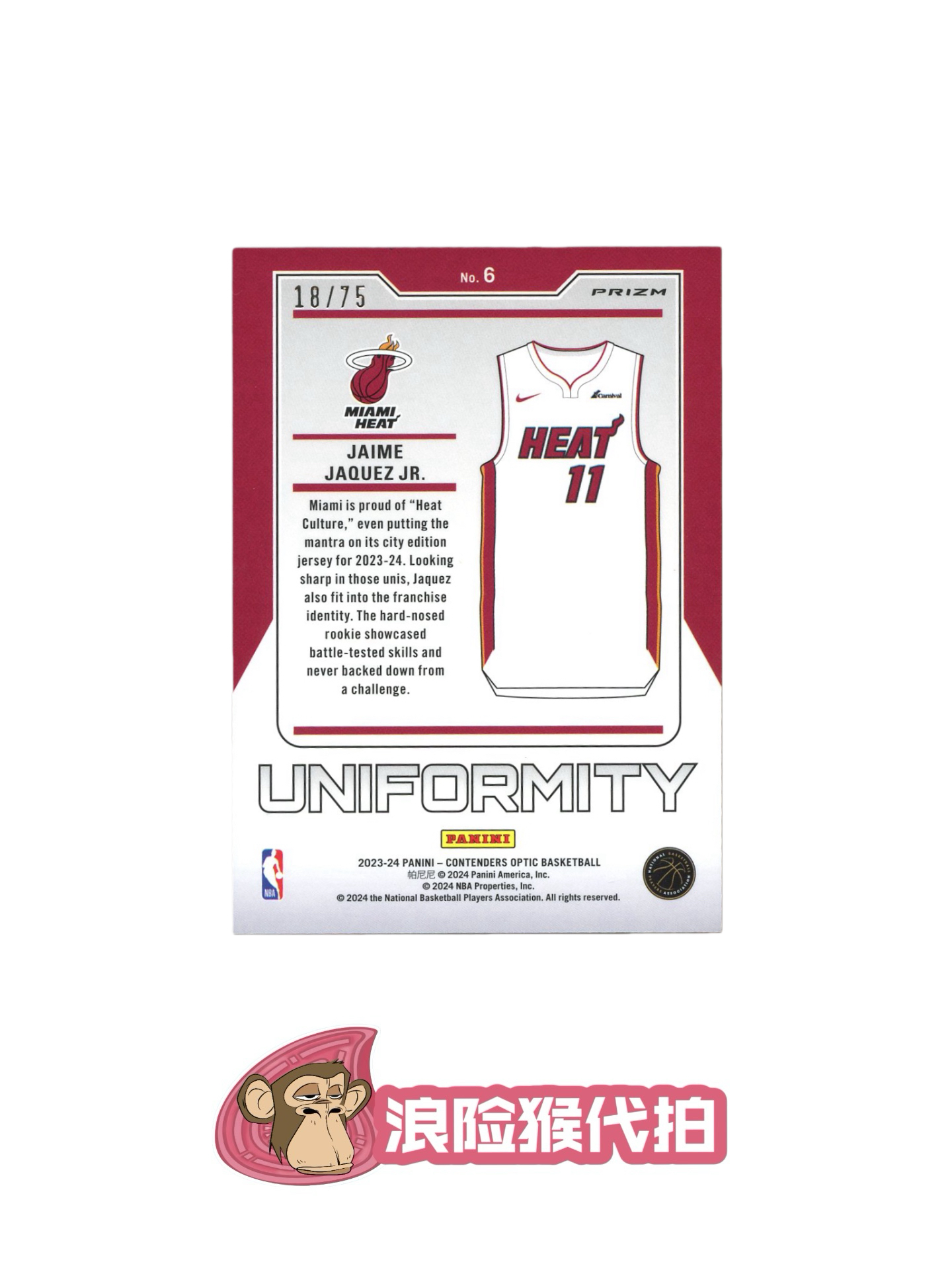 【浪险猴🐒代拍】2023-24 Panini Contenders Optic Jaime Jaquez Jr. RC 球票 热火 新秀 小海梅 哈克斯 75编 碎冰折 折射 小背心 特卡 黎明