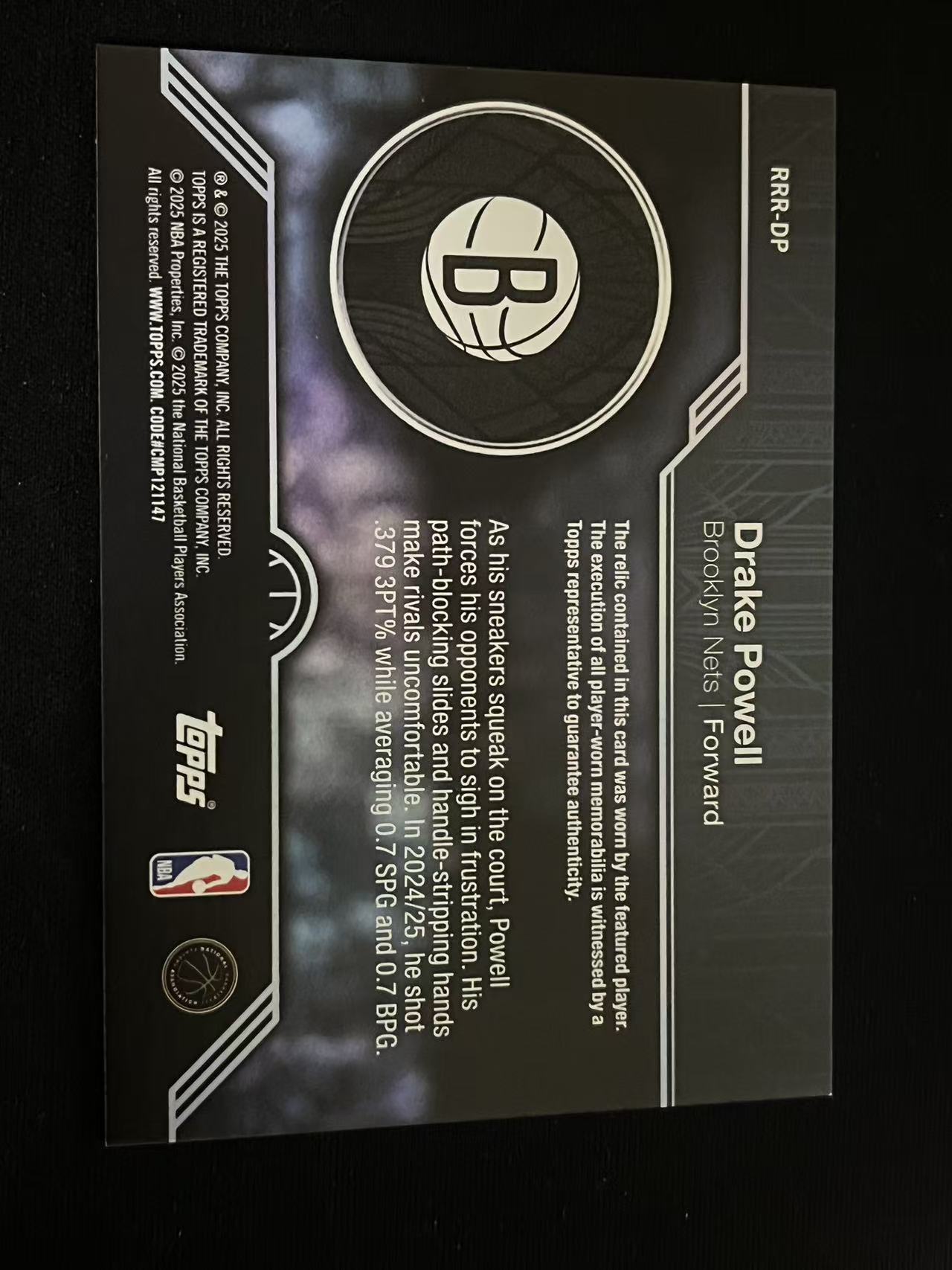 2025 Topps Flagship Drake Powell RC 篮网 德雷克-鲍威尔 新秀 小窗素球衣