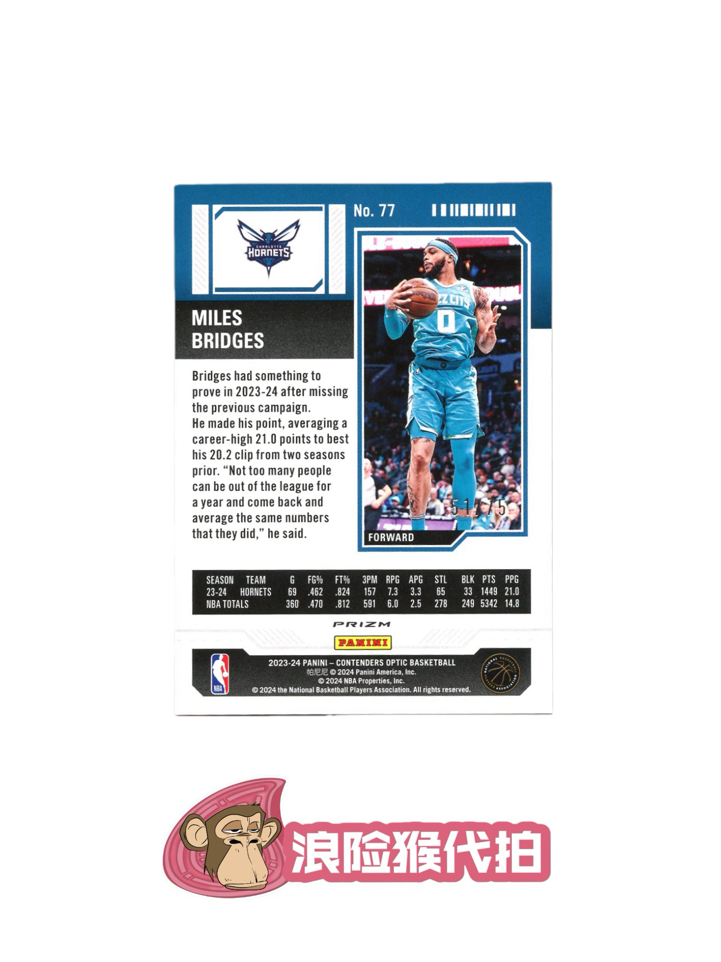 【浪险猴🐒代拍】2023-24 panini contenders optic miles bridges 球票 黄蜂 迈尔斯 布里奇斯 粉折 折射 51/75编 专收必备 卡品如图 黎明
