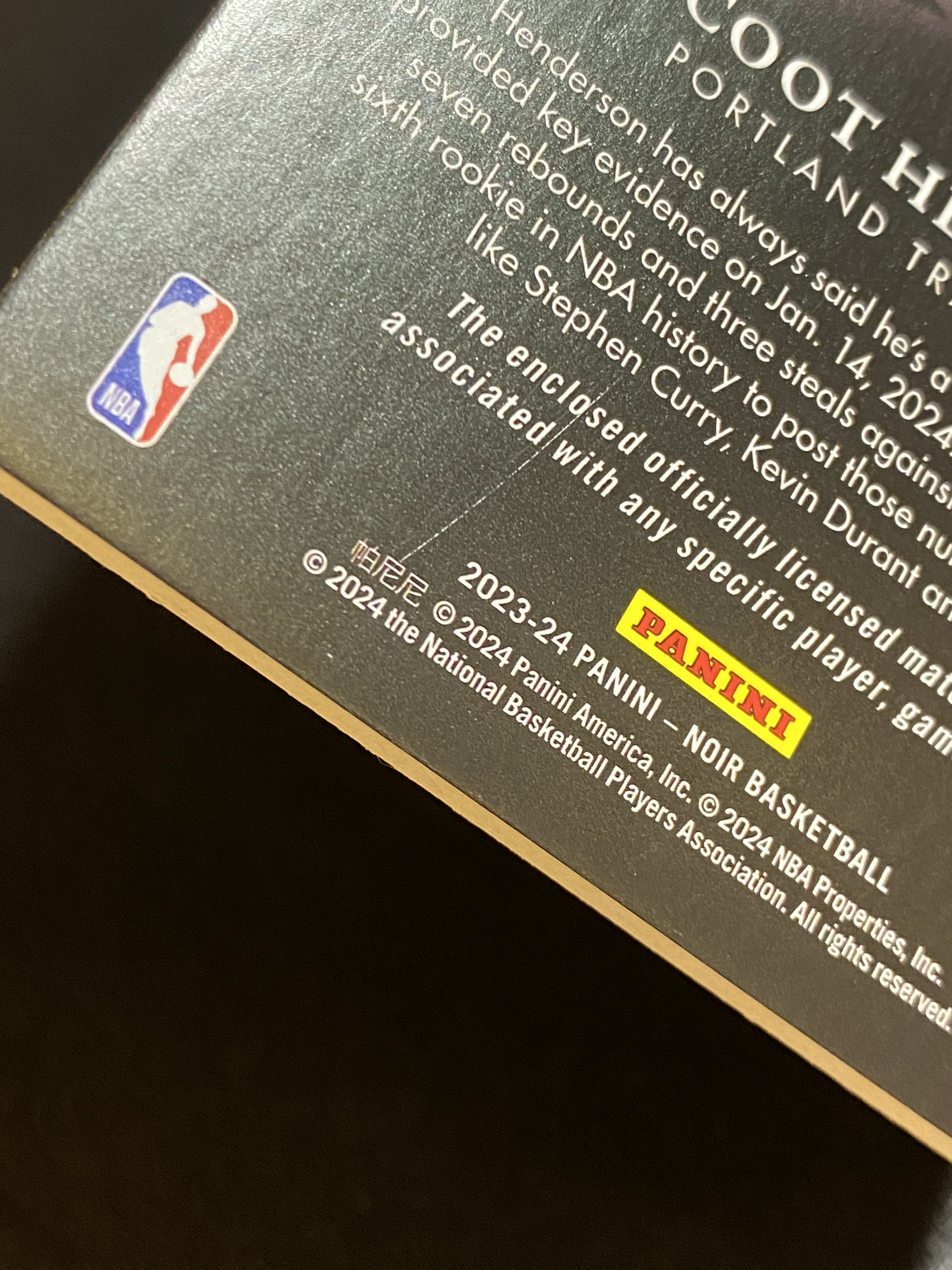2023-24 Panini Noir Scoot Henderson RC 诺尔系列 开拓者 新秀 斯库特 亨德森 小窗patch 3/25编 暴力切割 微瑕如图 拍卡请看描述 「粉总」