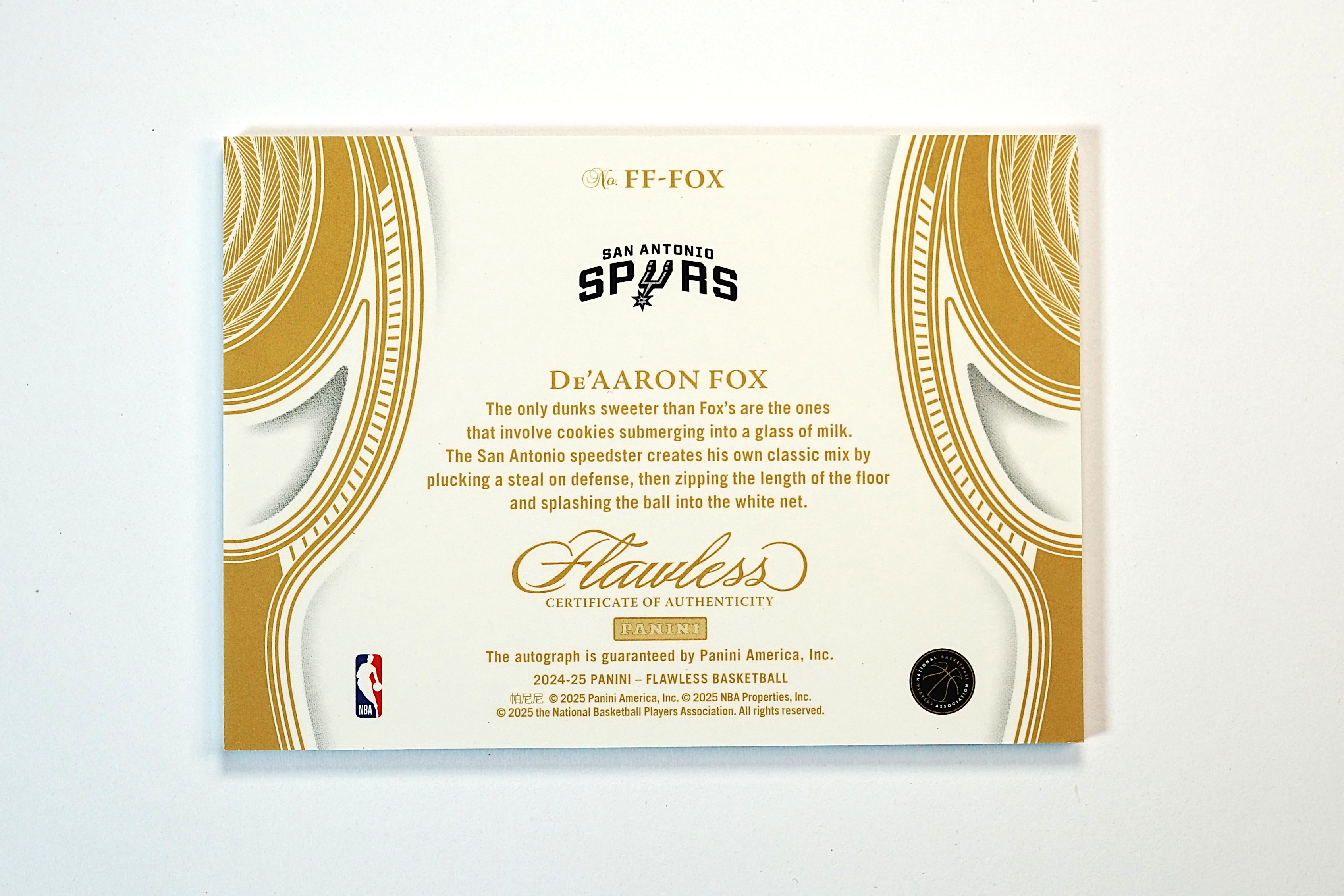 2024-25 Panini Flawless De'Aaron Fox 手提 达龙 福克斯 07/10编 绝杀签 签字 卡签 低编 金闪版 系列末年超有价 马刺 文班亚马队友 卡品微瑕如图【MC】