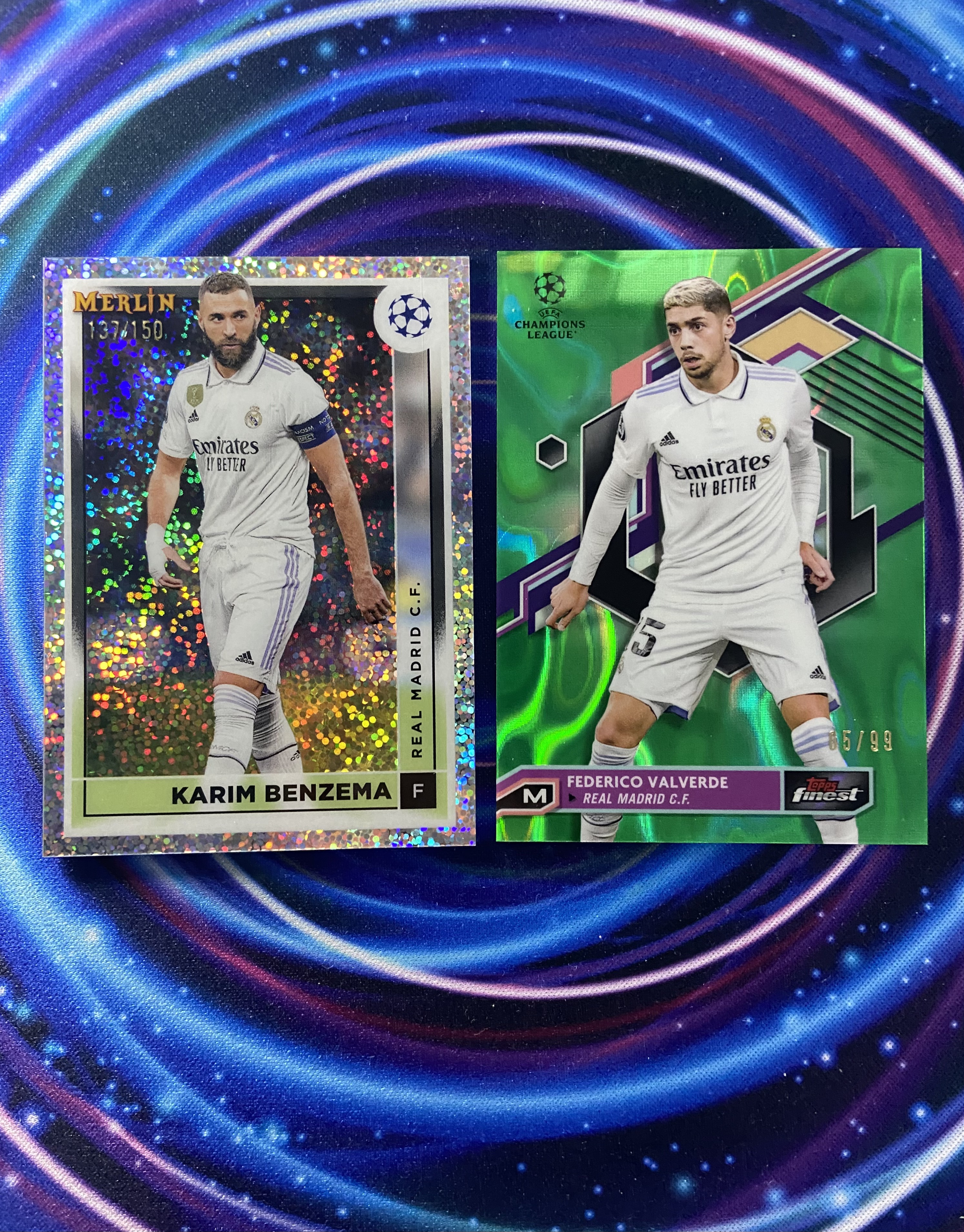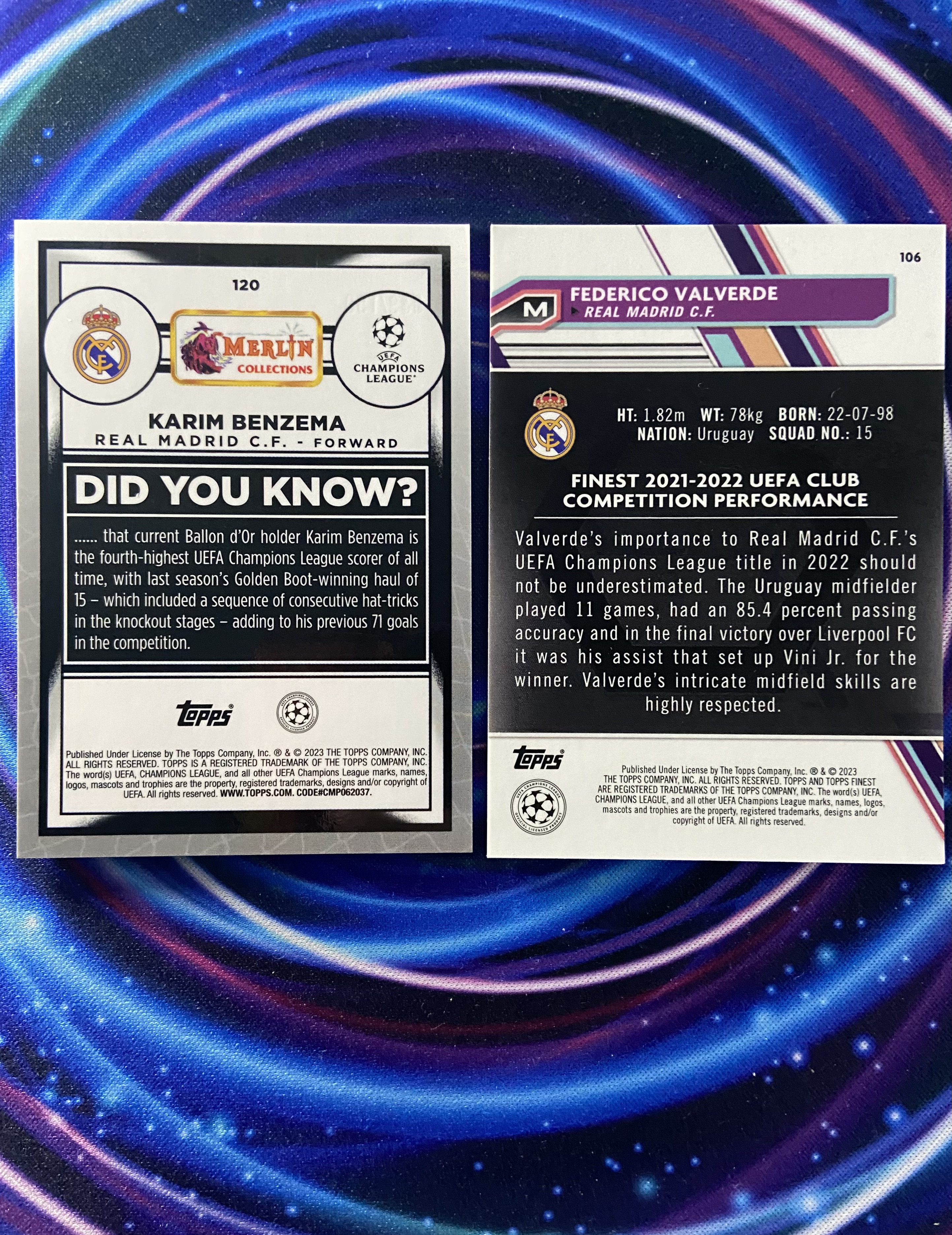 2023 Topps Merlin chrome Karim Benzema finest 皇家马德里 本泽马 巴尔韦德 巴尔维德 99编 150编 绿熔岩折 碎点折 折射 lot【万卡收藏-BLZ】