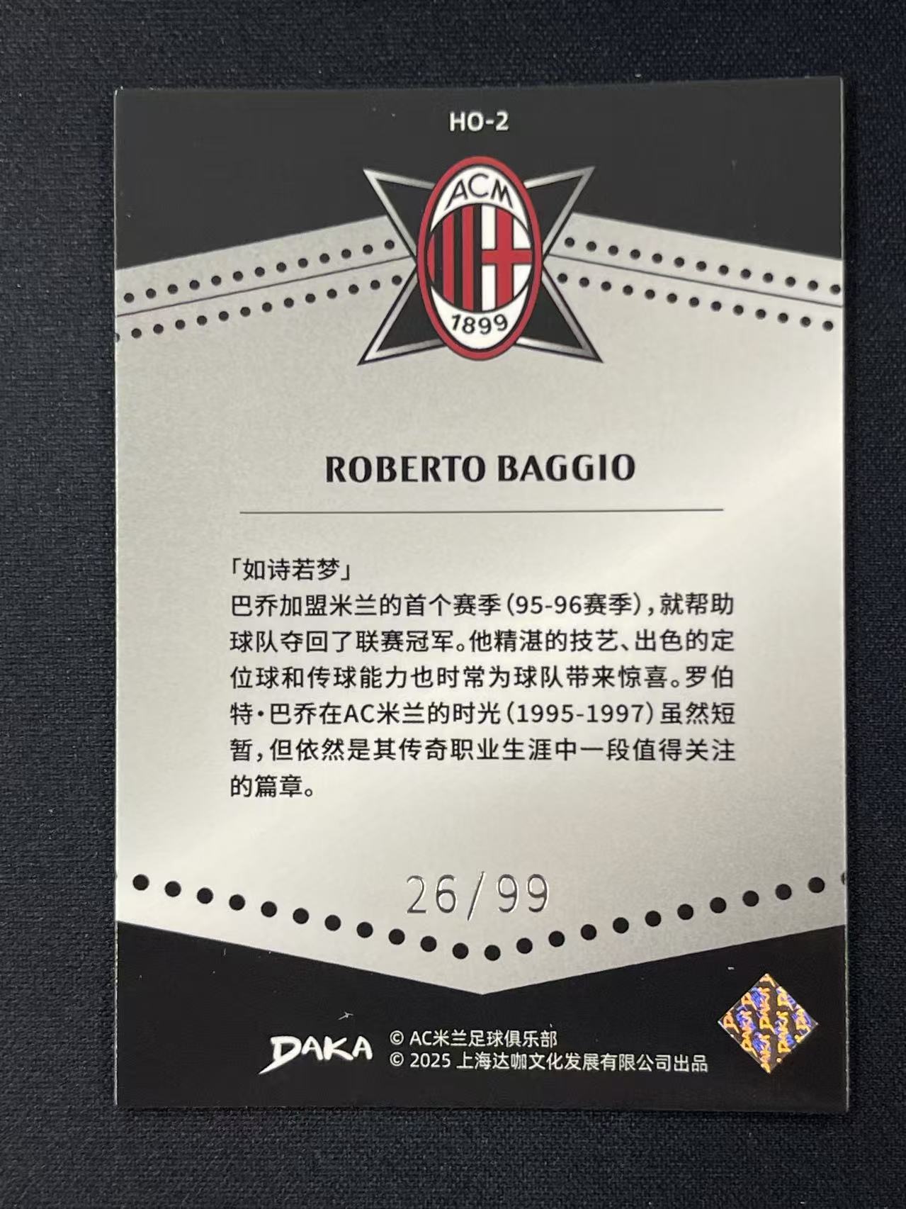 2023-24 DAKA AC米兰 MilanOne&Two队盒 Roberto Baggio 巴乔 Holocene Base 26/99编 紫平行 HO-2 贝勒21