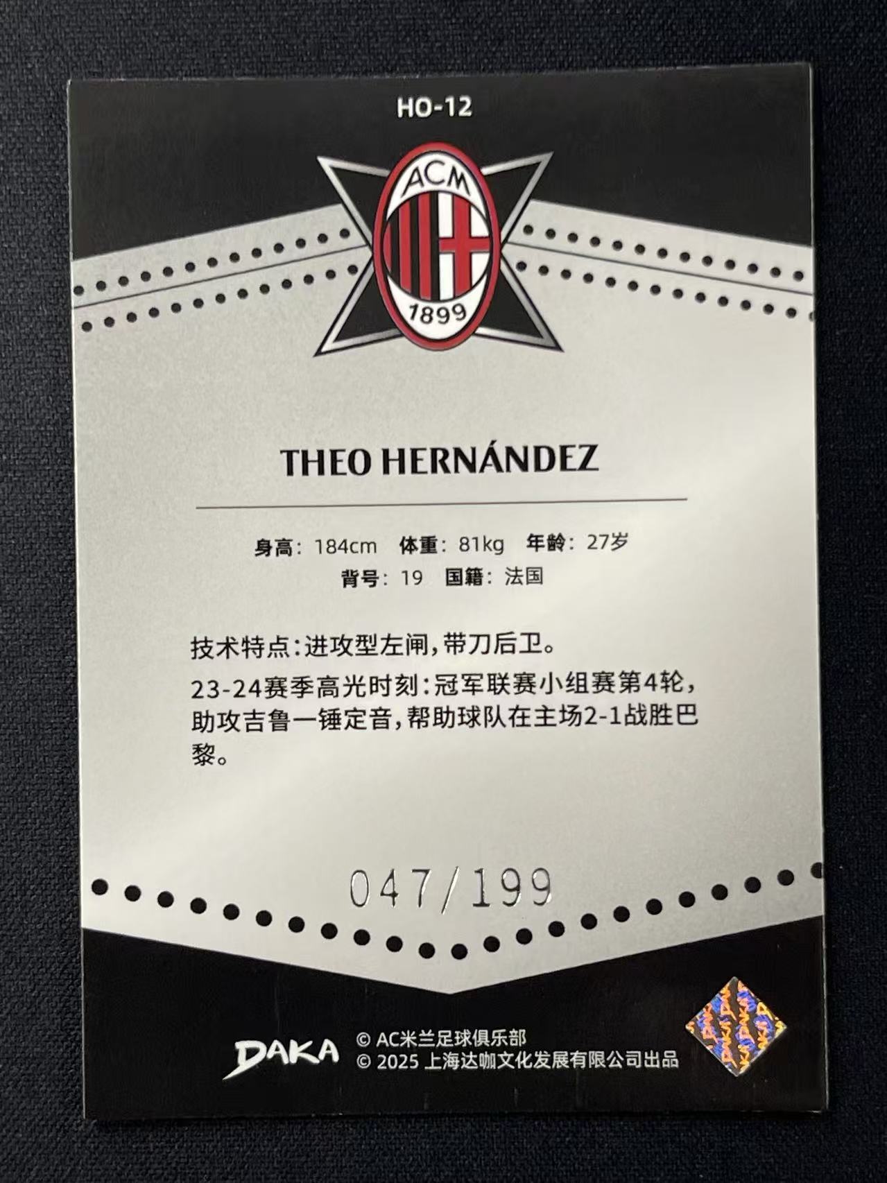 2024-25 DAKA AC米兰 MilanOne&Two队盒 Theo Hernández 特奥 Holocene Base 47/199编 银平行 阿守