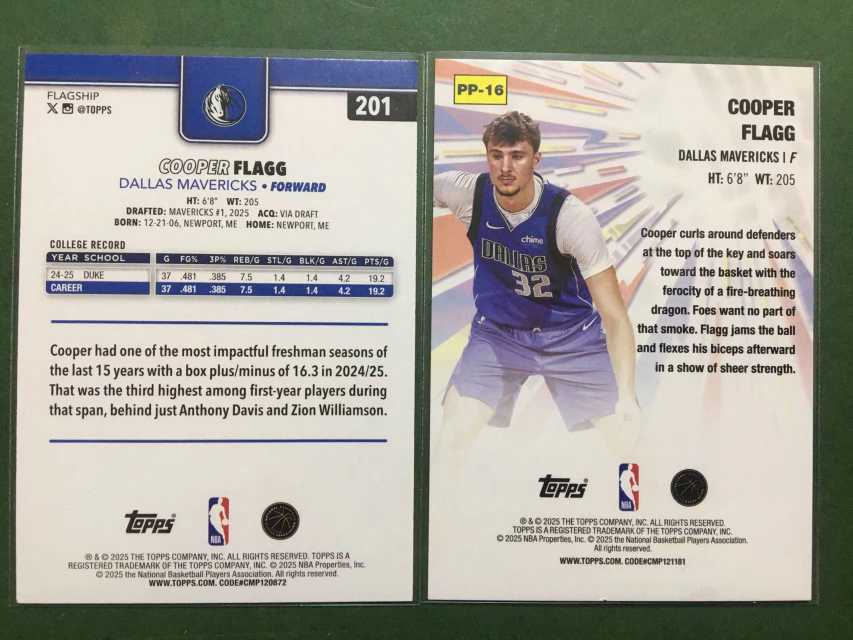 2025 Topps Flagship Cooper Flagg RC 元年 新秀 独行侠 状元 库珀 弗拉格 正base 美国之子 POWER 能量特卡 超新星 2张lot 专收必备 不保卡品#黑子