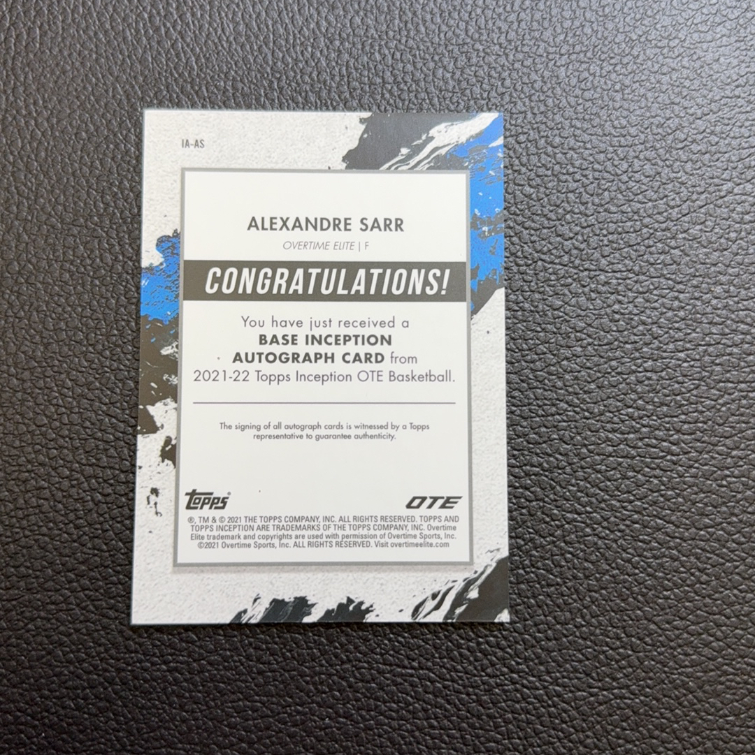 2021-22 Topps Inception Alexandre Sarr 盗梦 亚历山大 萨尔 签字 卡签 52/75编 卡品如图 诗歌