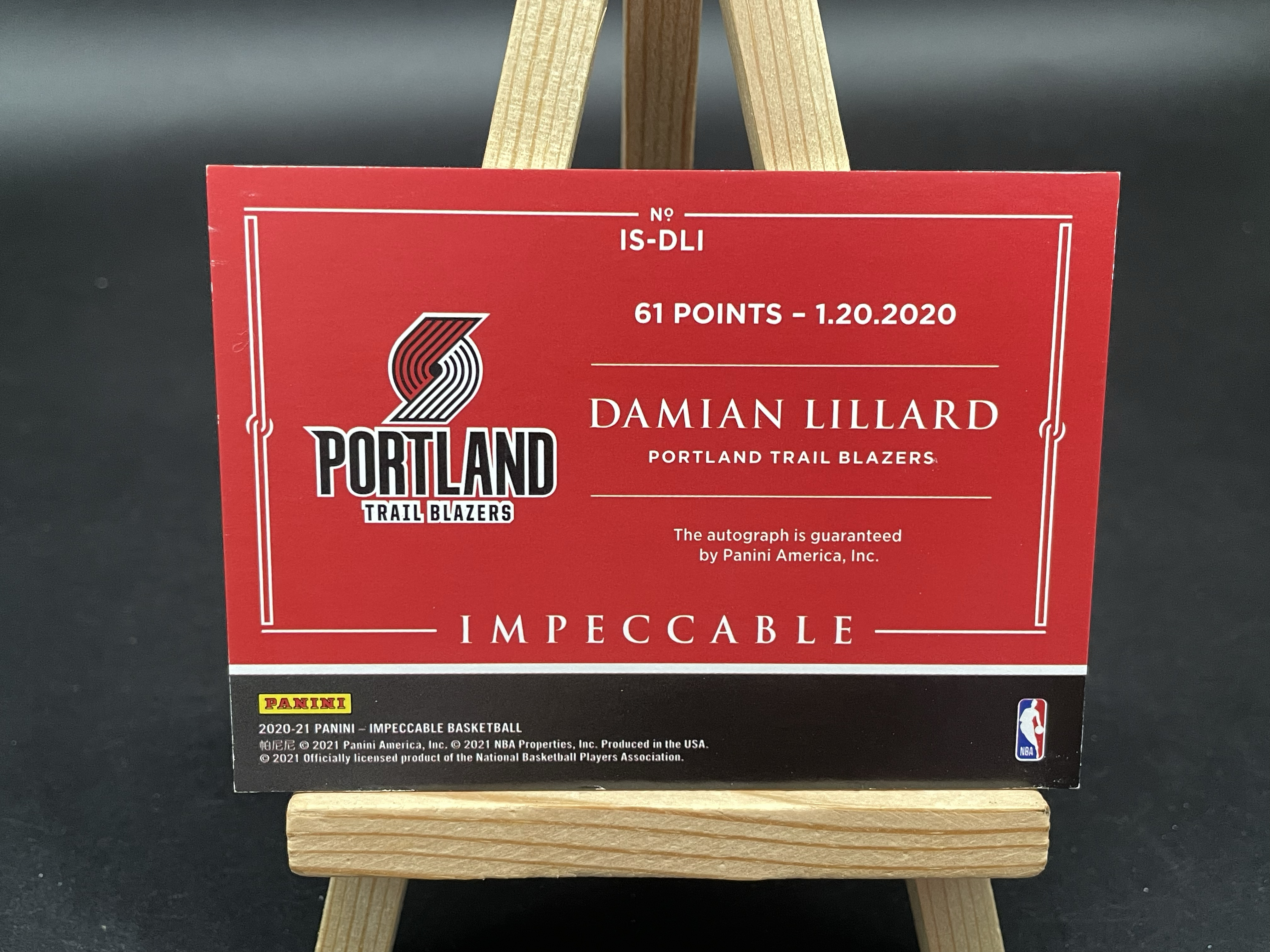 2020-21 Panini Impeccable Damian Lillard 【白鸟代卖 sean 寄付特快】小真金 数据 利拉德 利指导 /61编 签字 卡签 微瑕如图