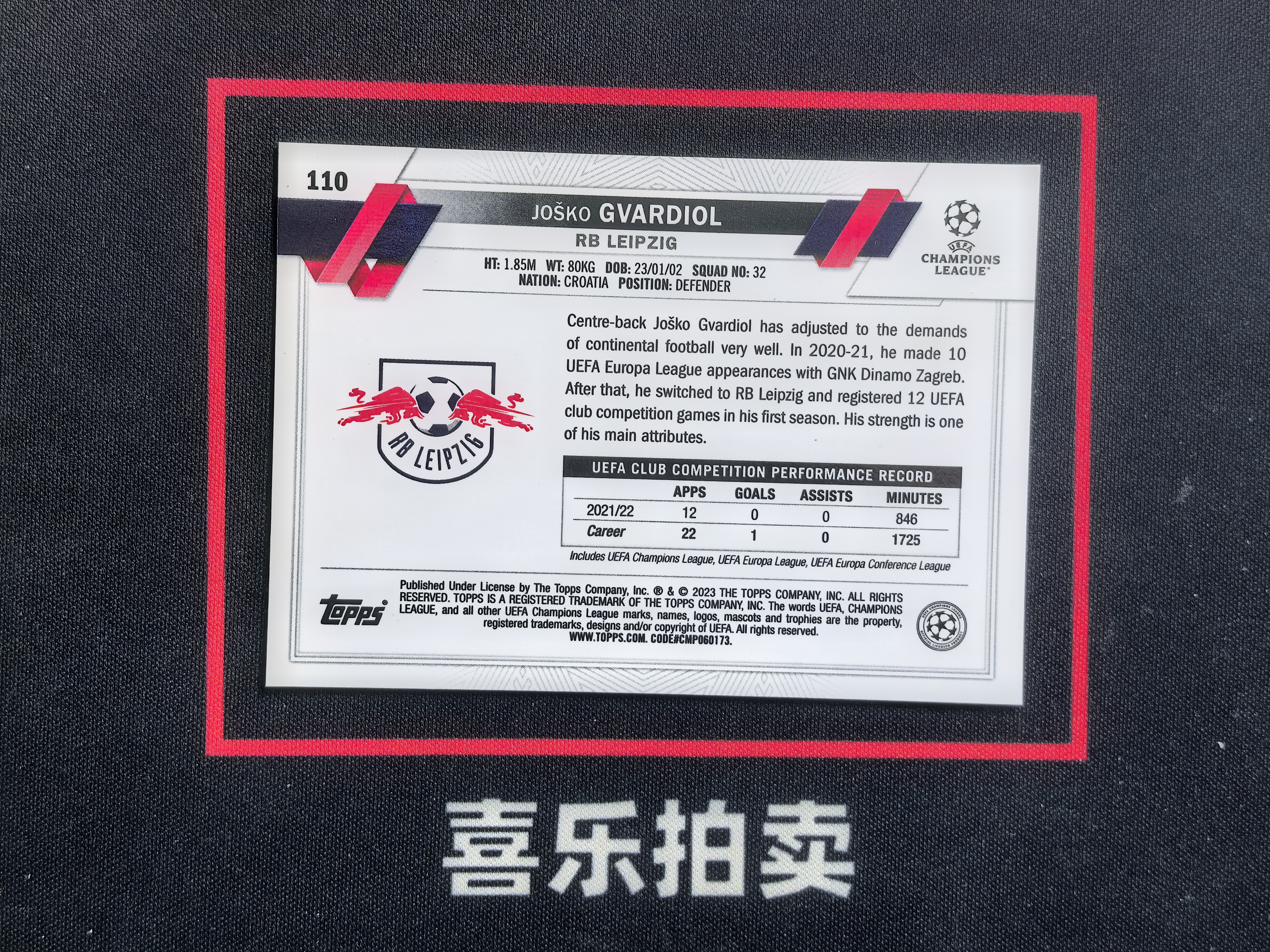 2023 Topps Chrome Josko Gvardiol 欧冠 欧战TC 莱比锡红牛 格瓦迪奥尔 金熔岩折 折射 收藏必备 卡品如图 sjl