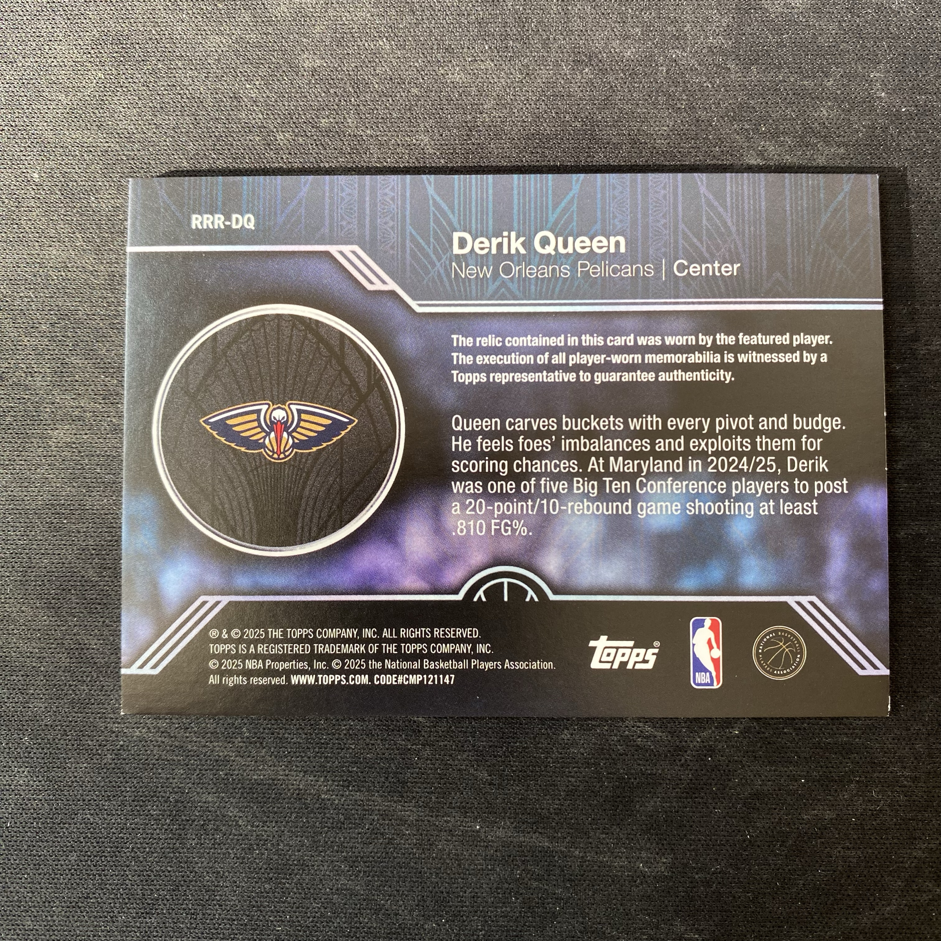 2025 Topps flagship Derik Queen RC 【星集卡代卖】cyb1119 篮球 鹈鹕 新秀 德里克 奎因 球衣物料切割 实物 折射