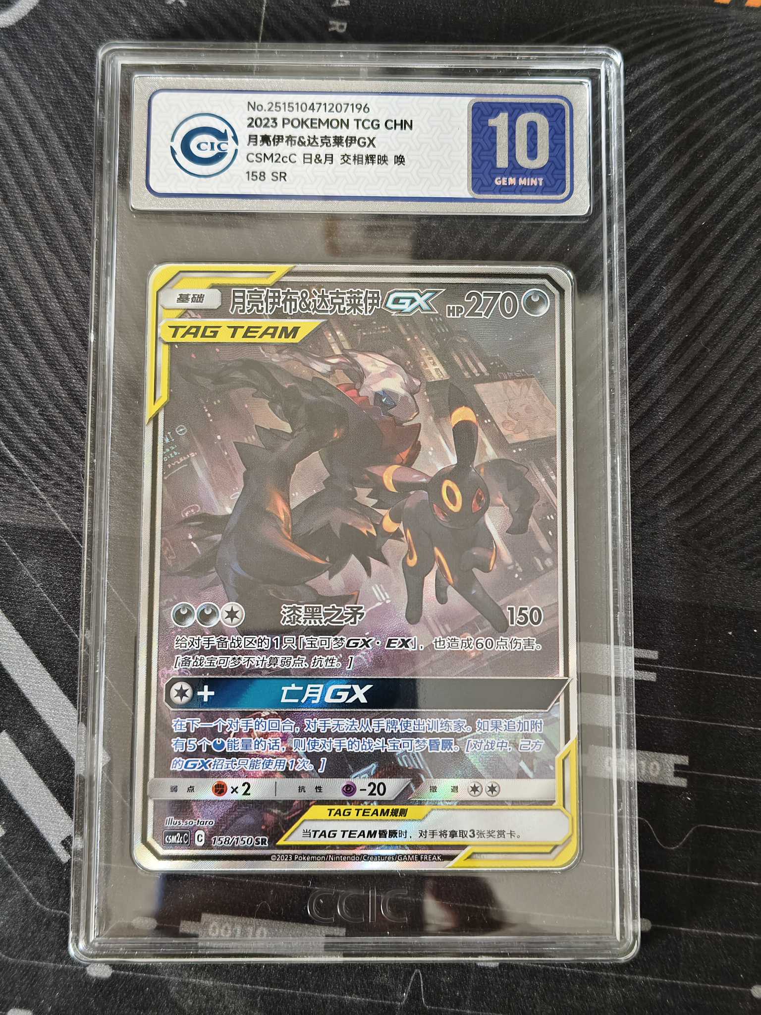 2023 Pokemon TCG 太阳&月亮 交相辉映 唤 月亮伊布&达克莱伊GX chs 宝可梦 158/150 SR 大手绘 CCIC10分 ja