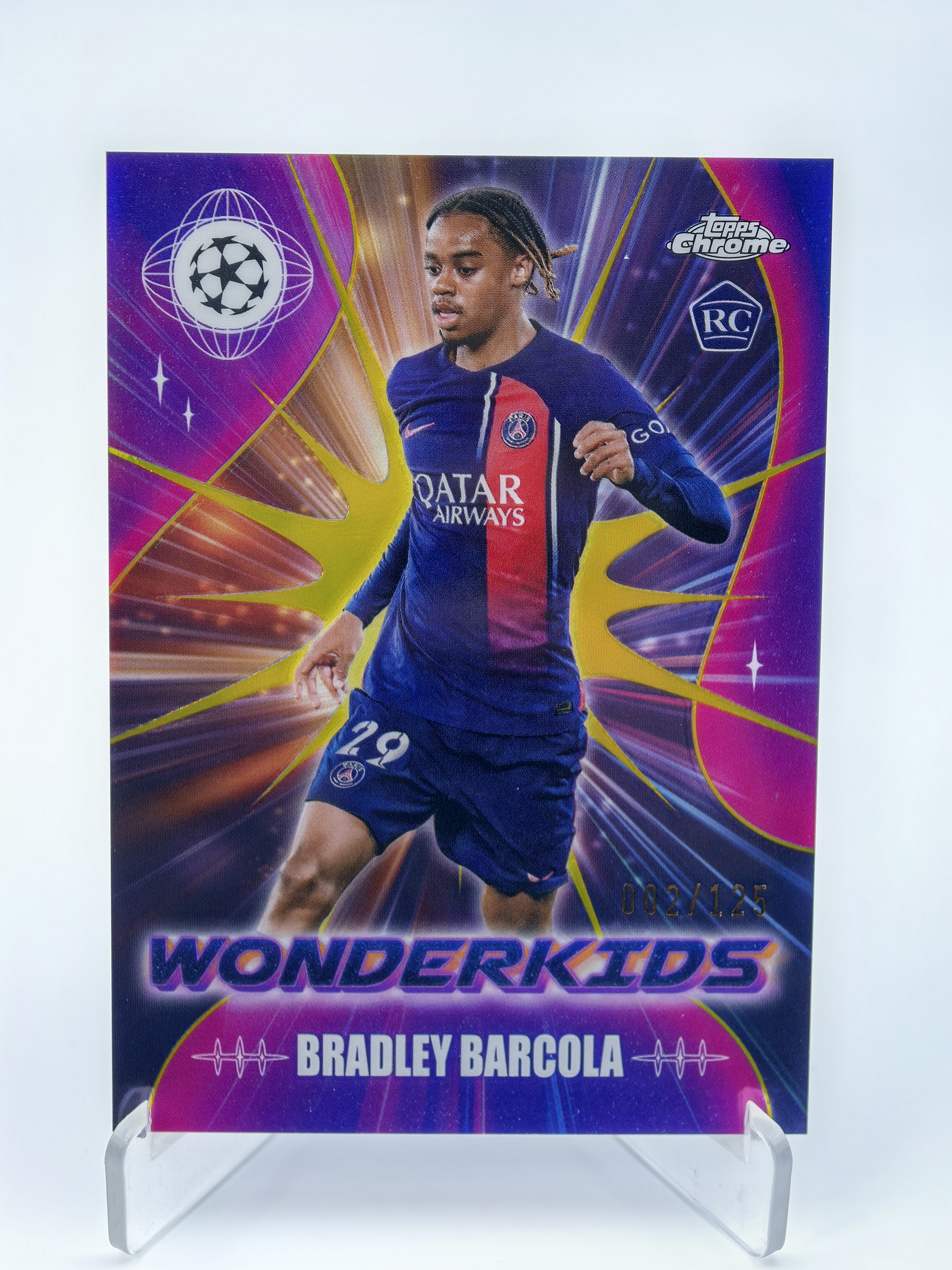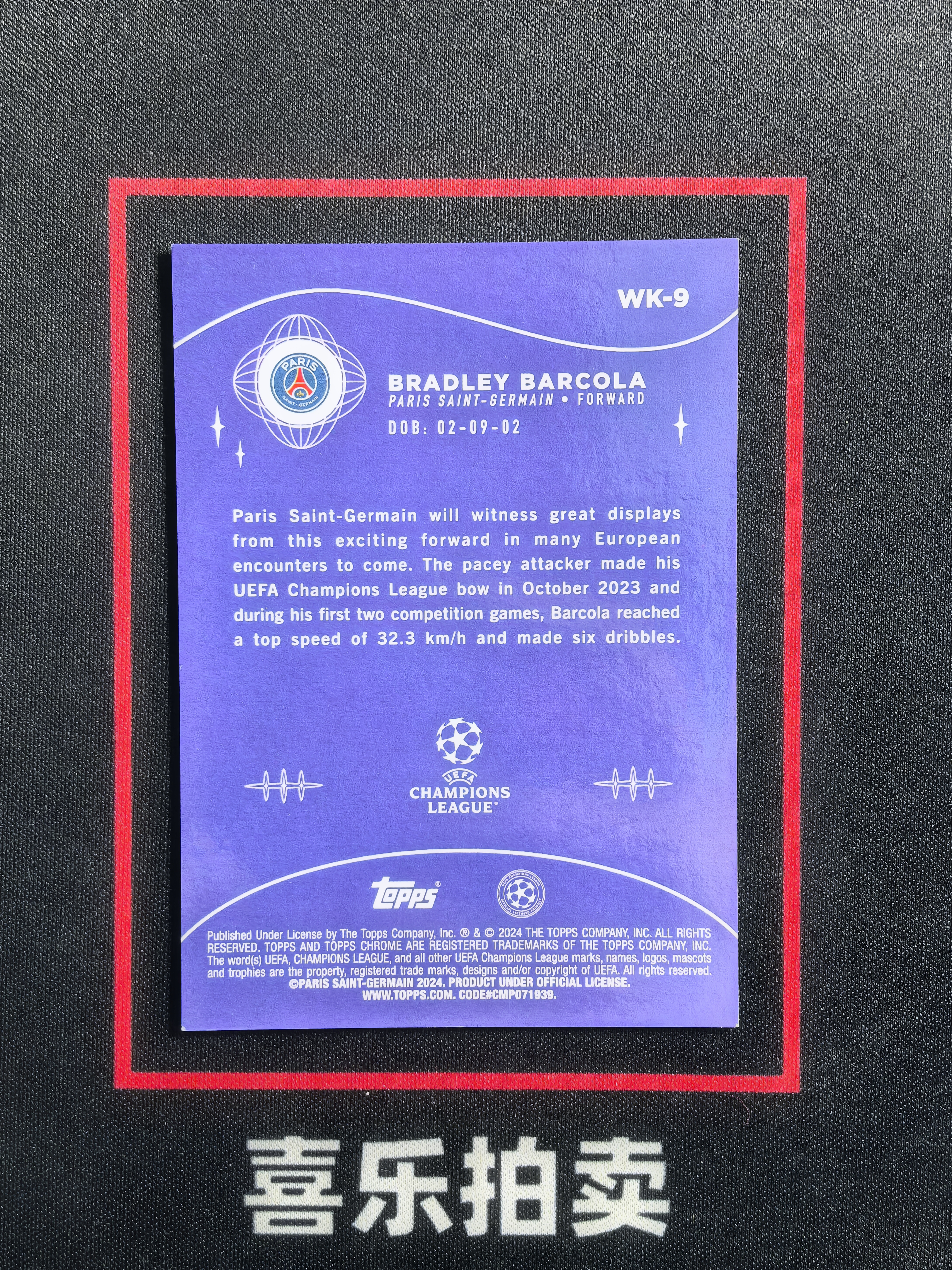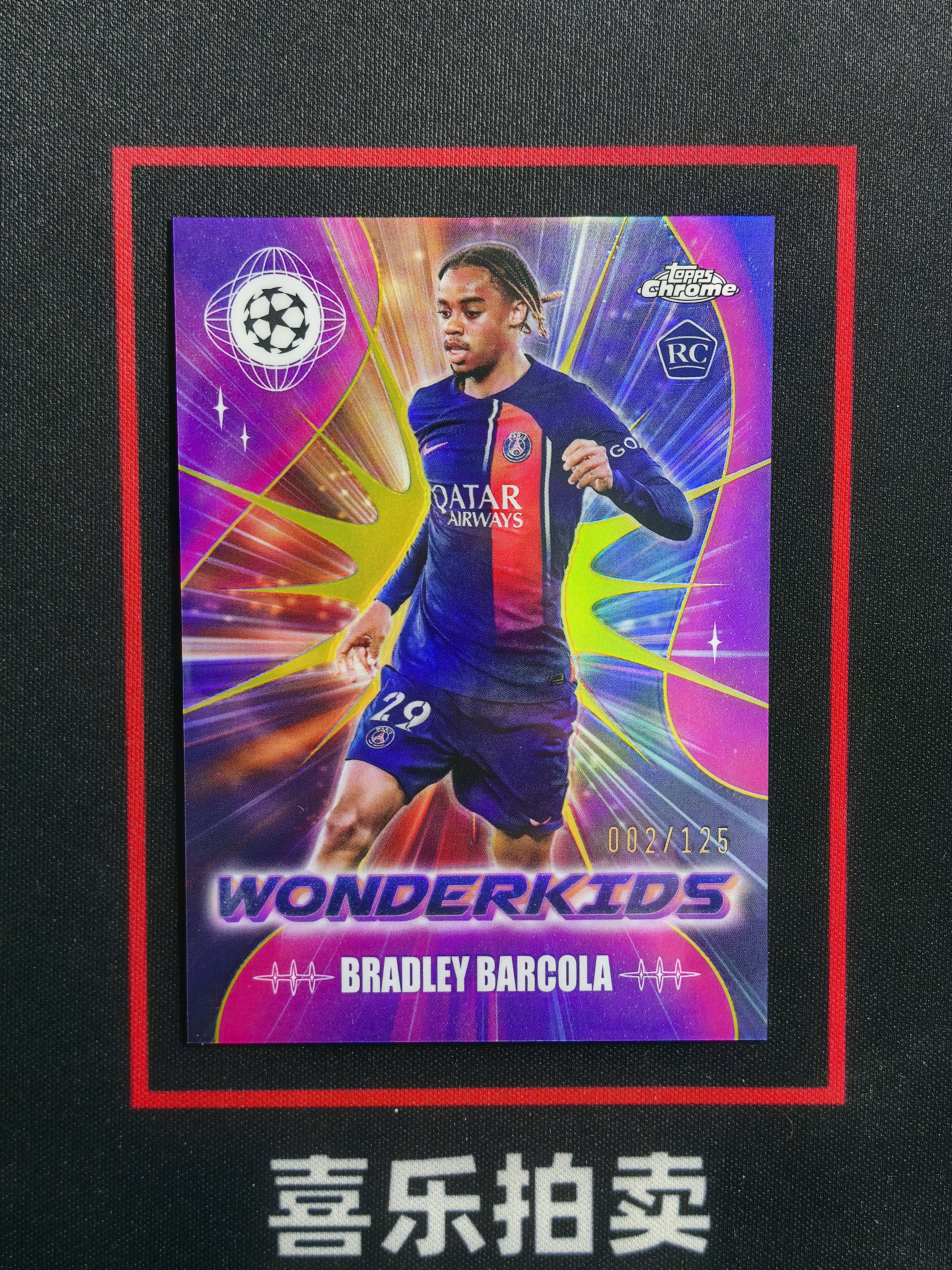2024 Topps Chrome Bradley Barcola 欧冠 欧战TC 新秀RC 巴黎圣日耳曼 大巴黎 巴尔科拉 002/125编 金折 折射 神奇小妖 特卡 潜力无限 卡品如图 sjl