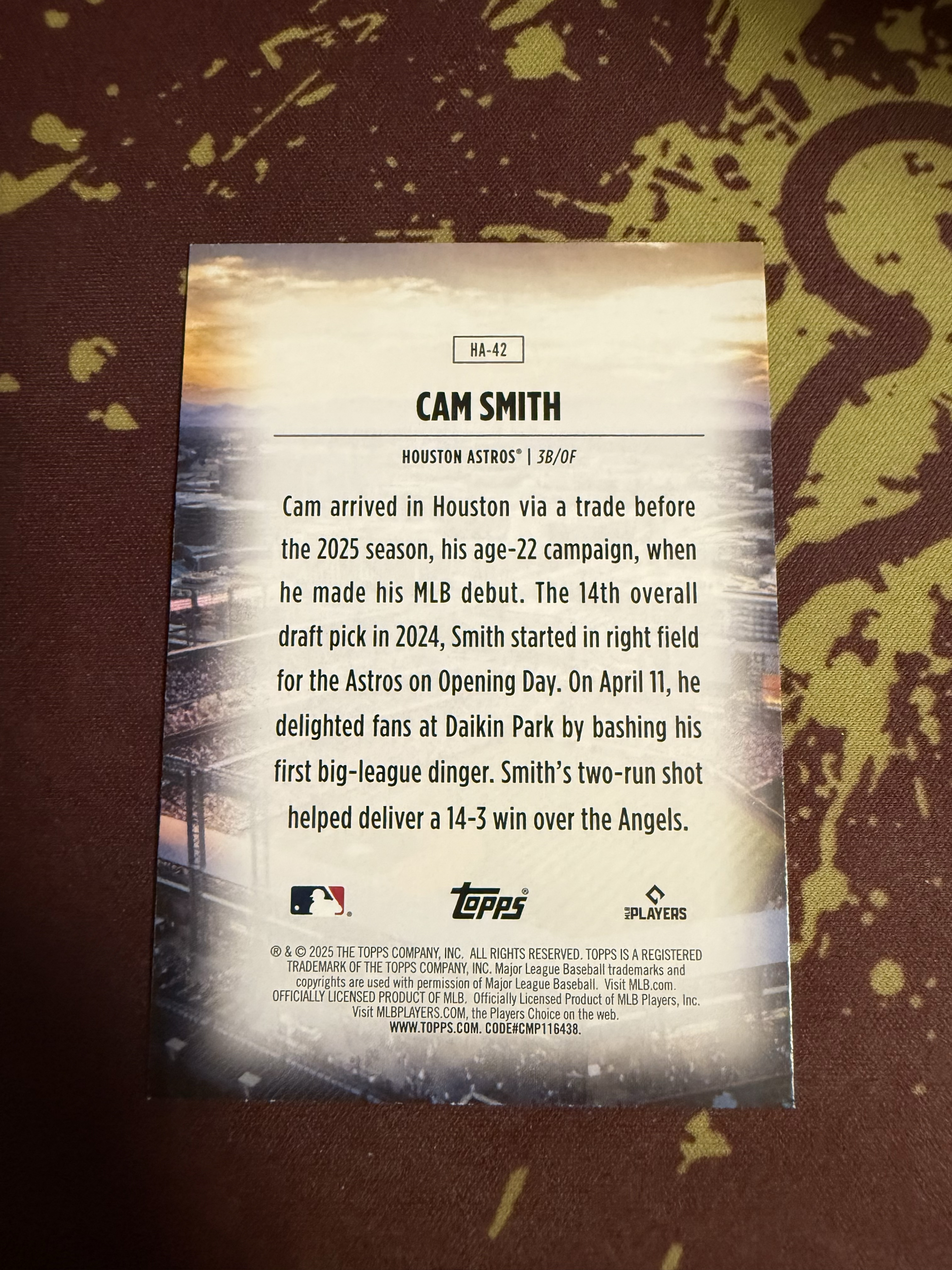 【对号拍卖】(Lt总)2025 Topps Chrome pro debut MLB 棒球系列 太空人新秀rc cam smith 卡姆 史密斯 Home Field 主场 地标 银折 大比例 稀有
