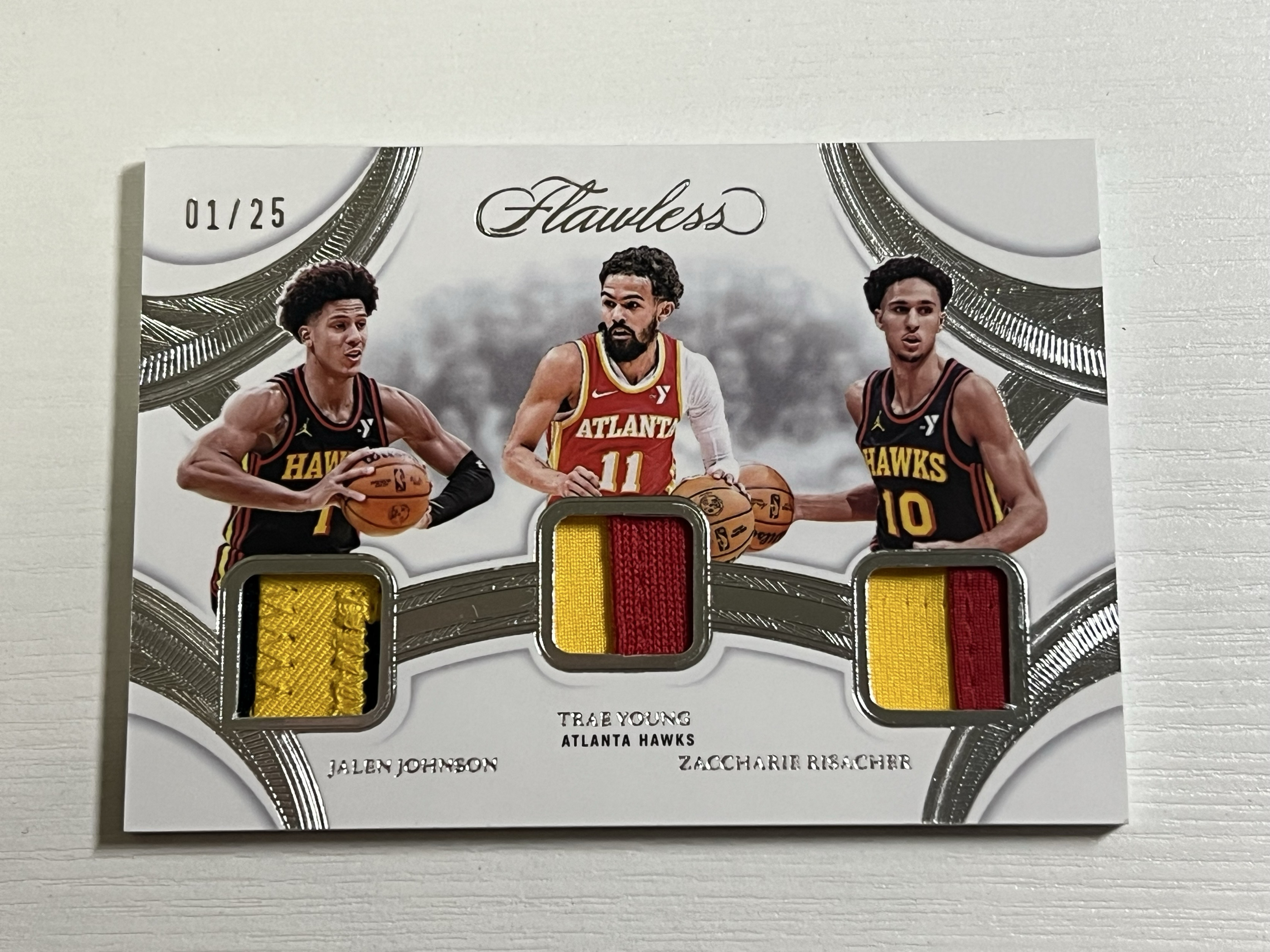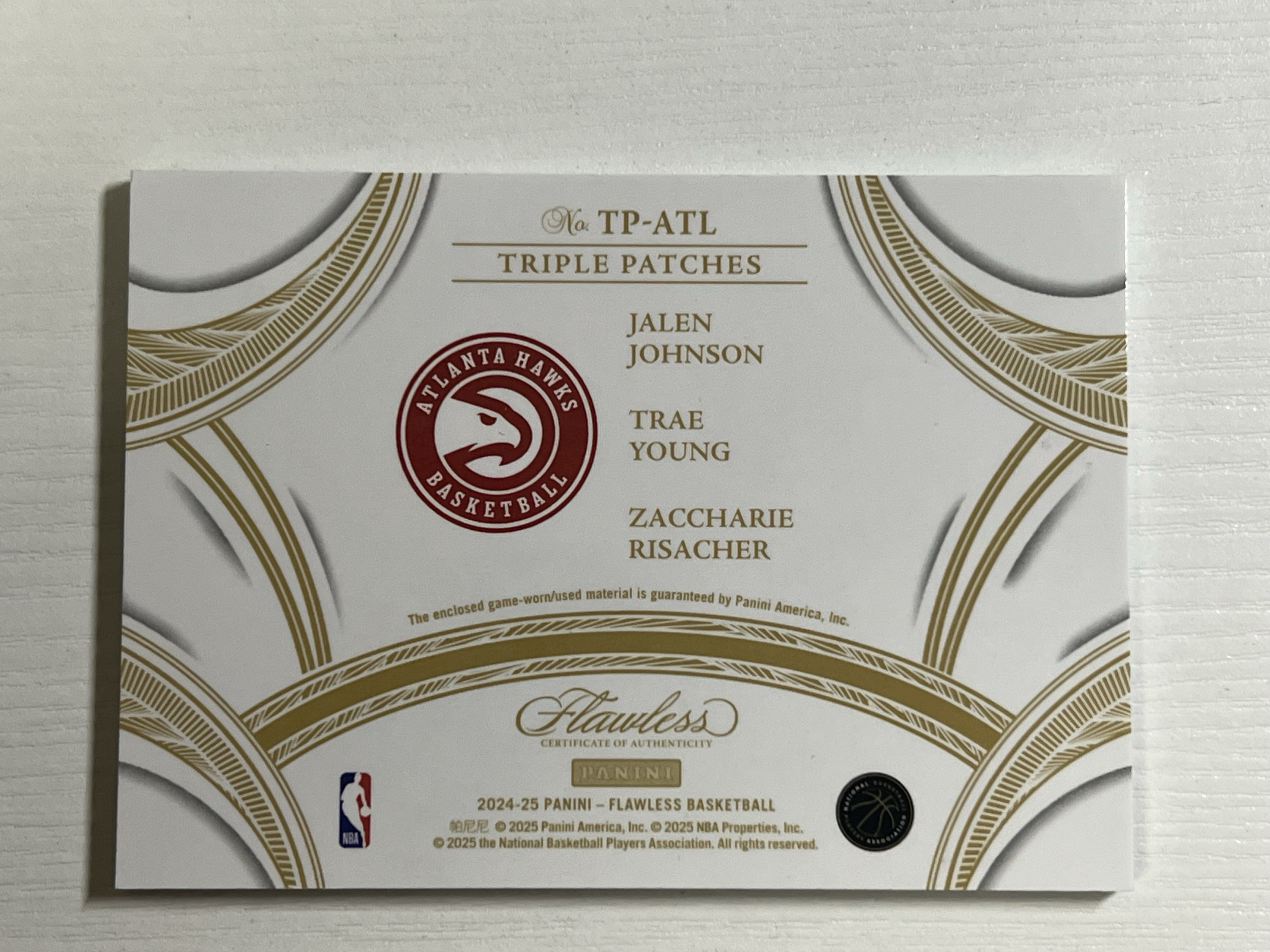 [qz拍卖]2024-25 Panini 手提 Flawless 老鹰 新秀 rc 里萨谢 杰伦 约翰逊 特雷杨 1/25编三人Patch 首编 落场物料 约翰逊同背 专收必备 微瑕 Carson