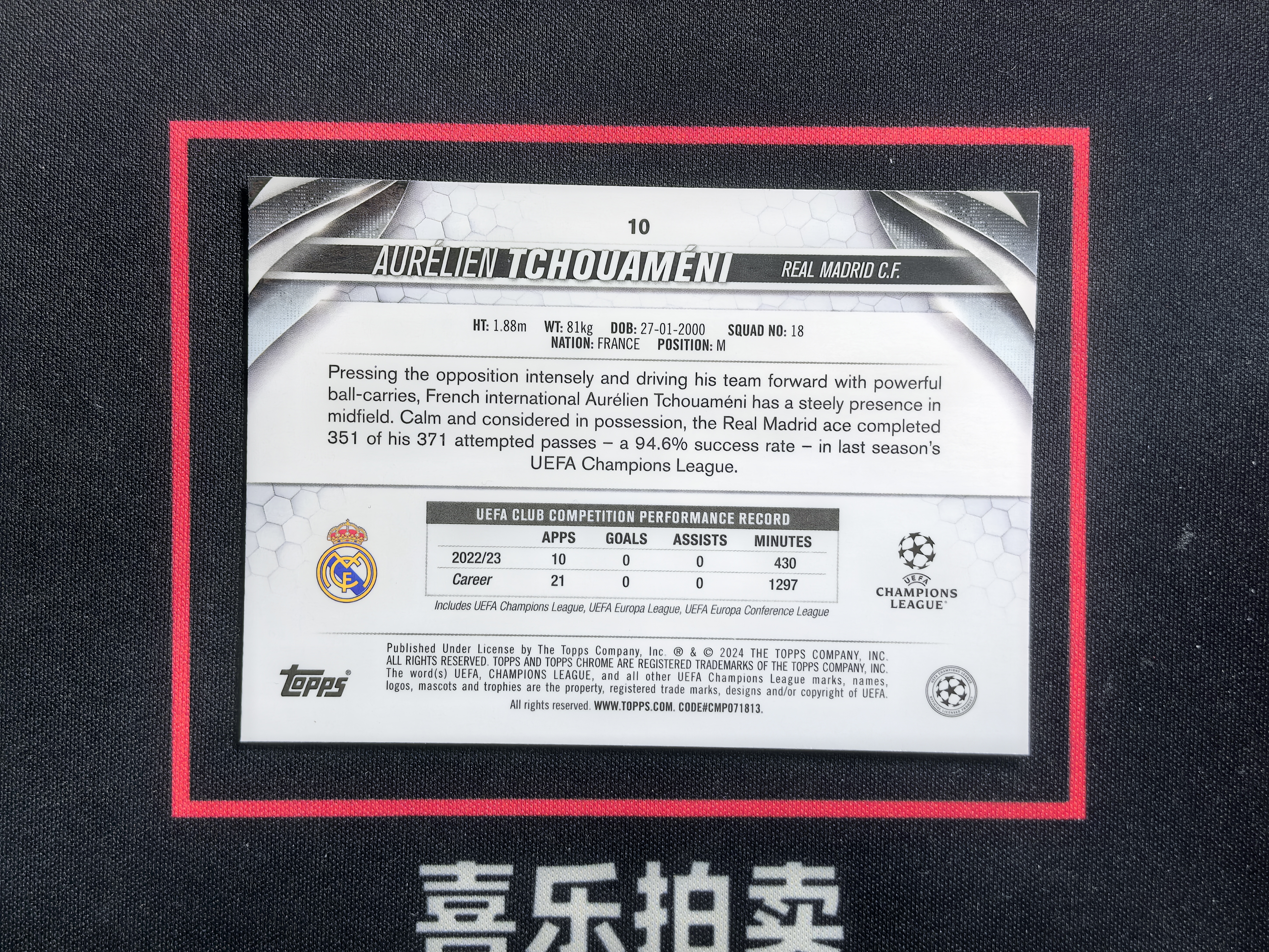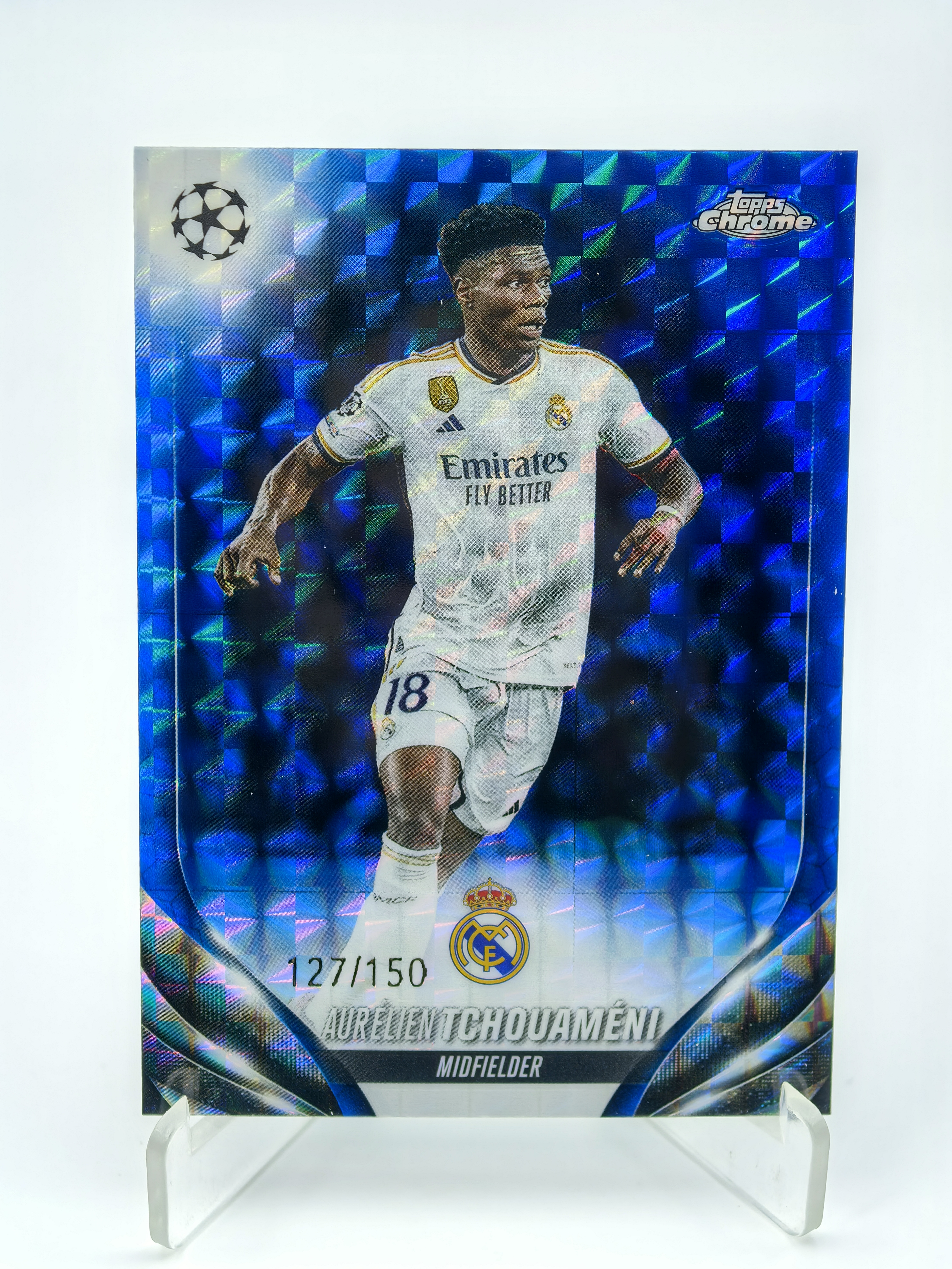 2024 Topps Chrome Aurélien Tchouameni 欧冠 欧战TC 皇马 皇家马德里 楚阿梅尼 楚阿美尼 127/150编 蓝马赛克折 折射 收藏必备 卡品如图 sjl