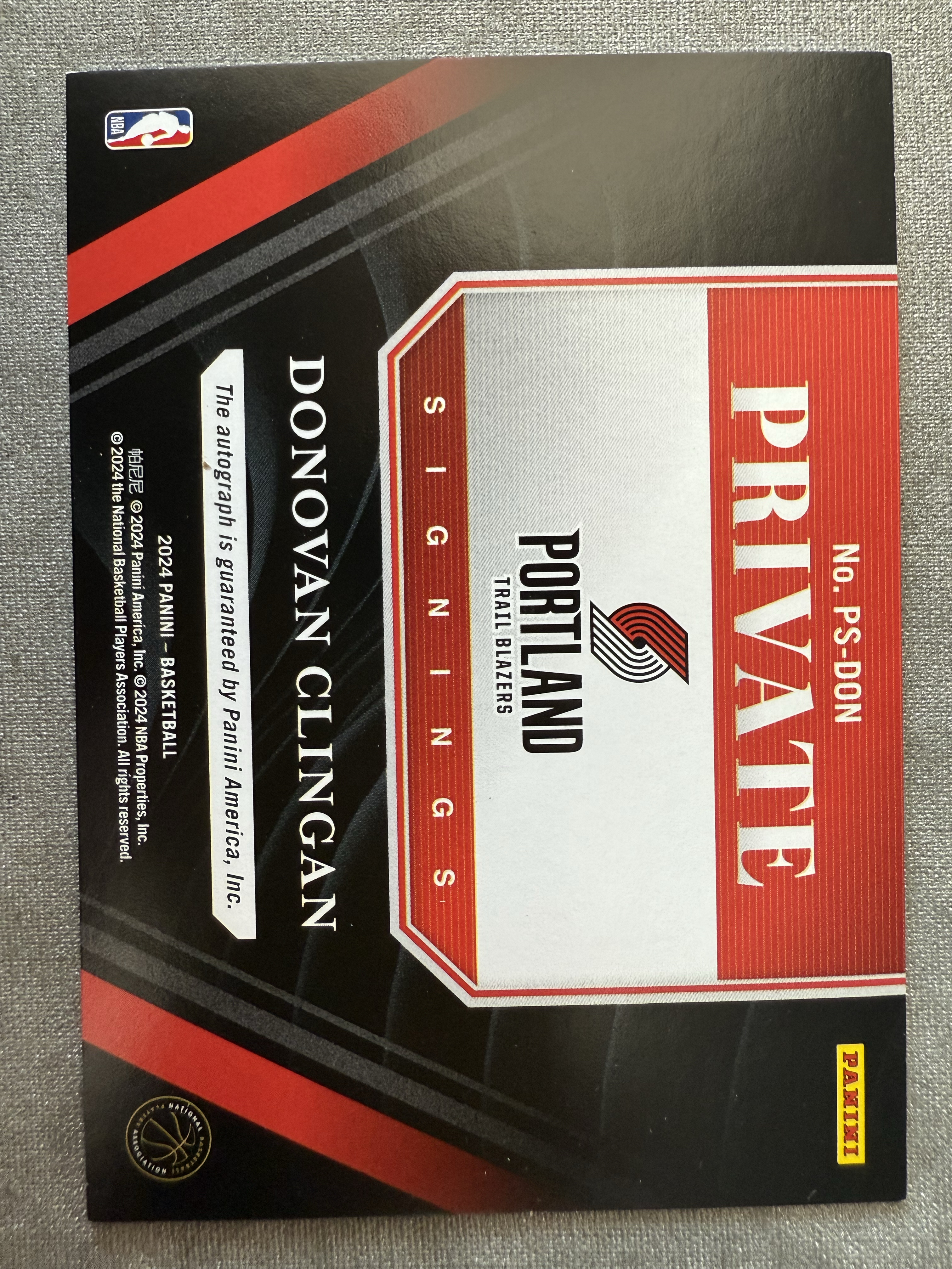 2024 Panini Private Donovan Clingan RC 克林根 新秀 开拓者 银折 球员签字卡 卡签 插入签 凑套必备 值得收藏
