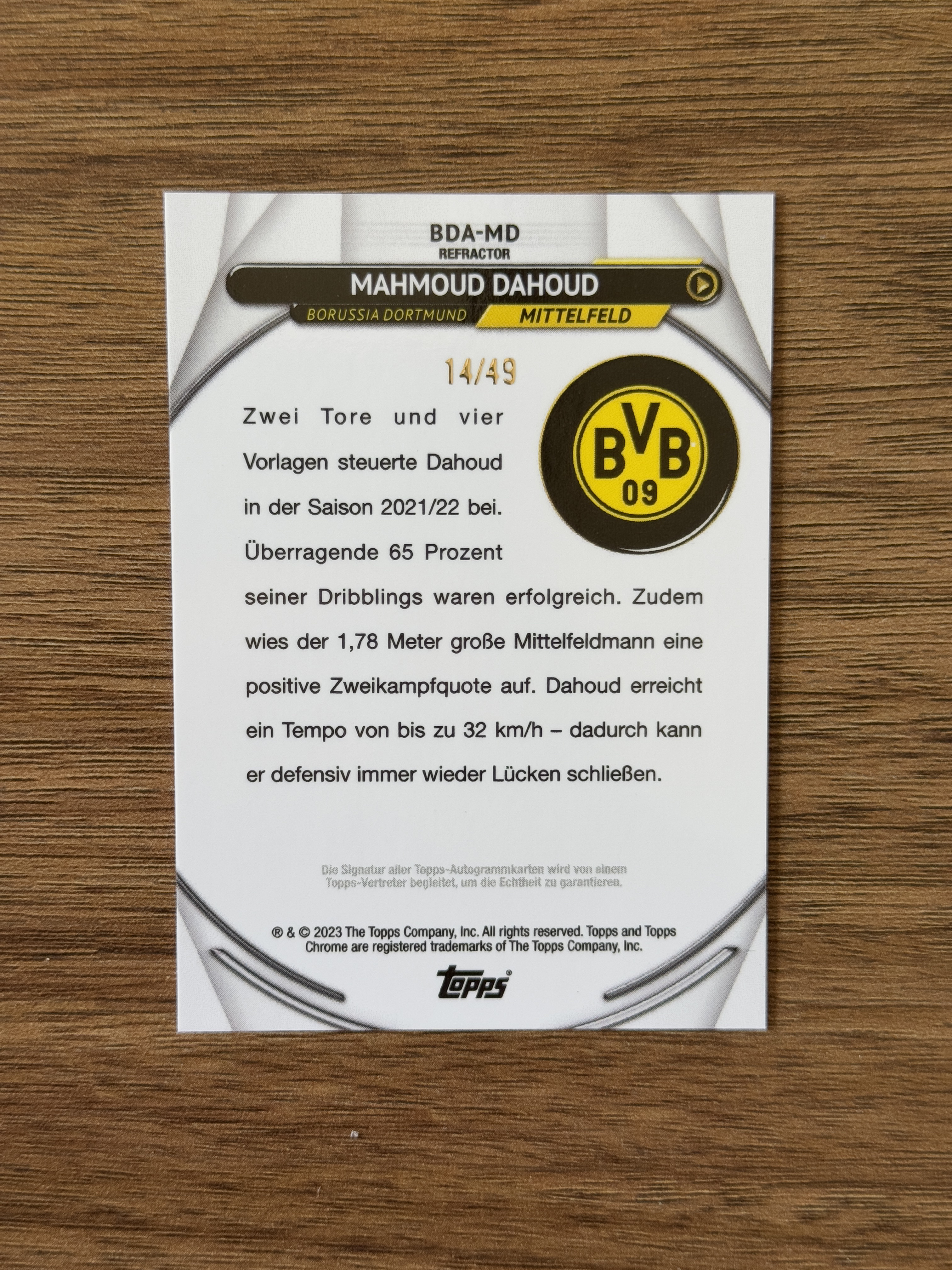 2023 Topps Chrome Mahmoud Dahoud 达胡德 /49编 银折 签字 卡签 完美签 多特蒙德 德国国脚 布莱顿 卡品如图