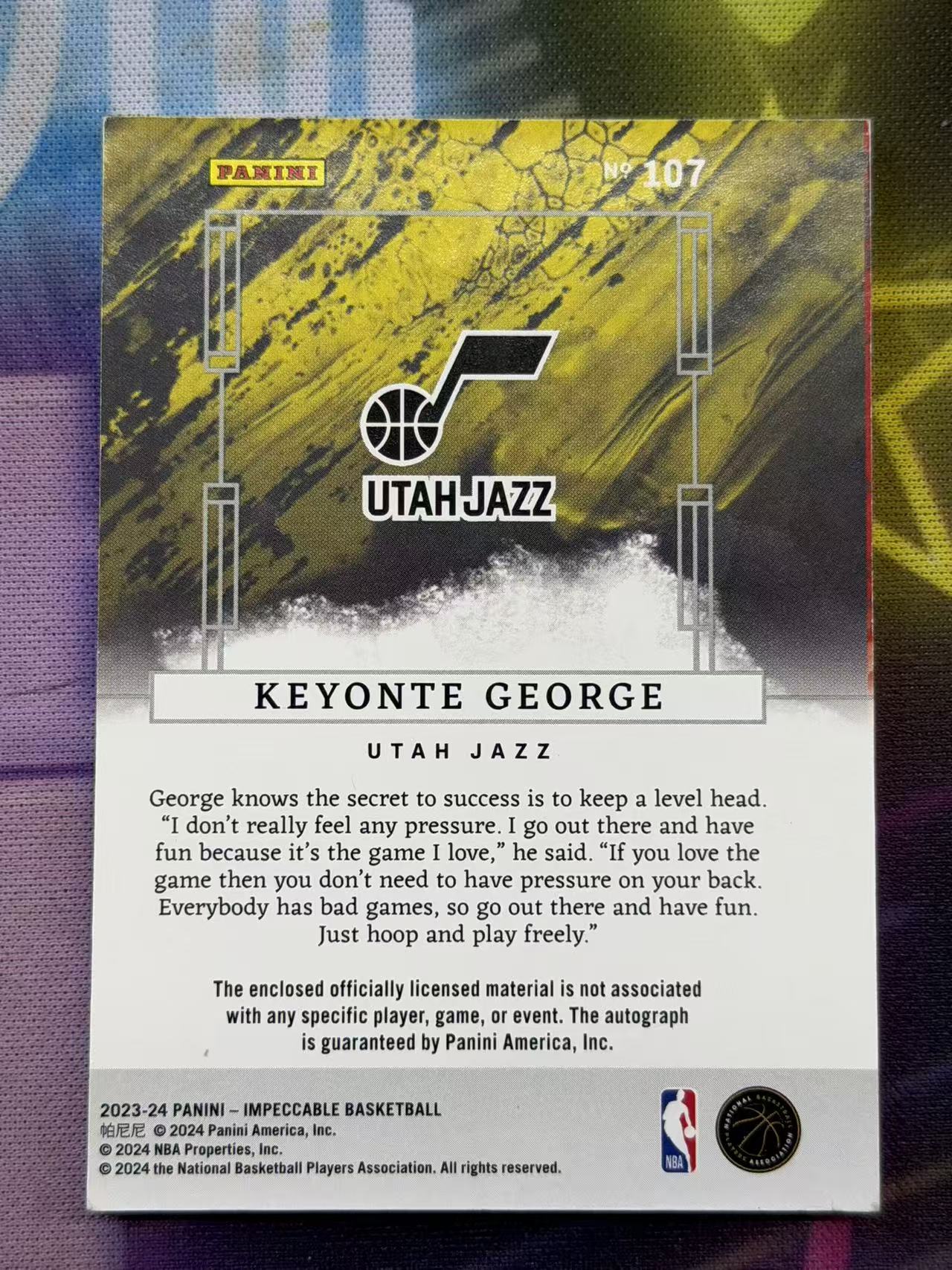 2023-24 Panini Impeccable Keyonte George RC 逸潮玩 小真金 爵士 猪猪侠 基昂特 乔治 限量/99编 RPA 签字 签名卡签 patch 瑕疵如图 xun