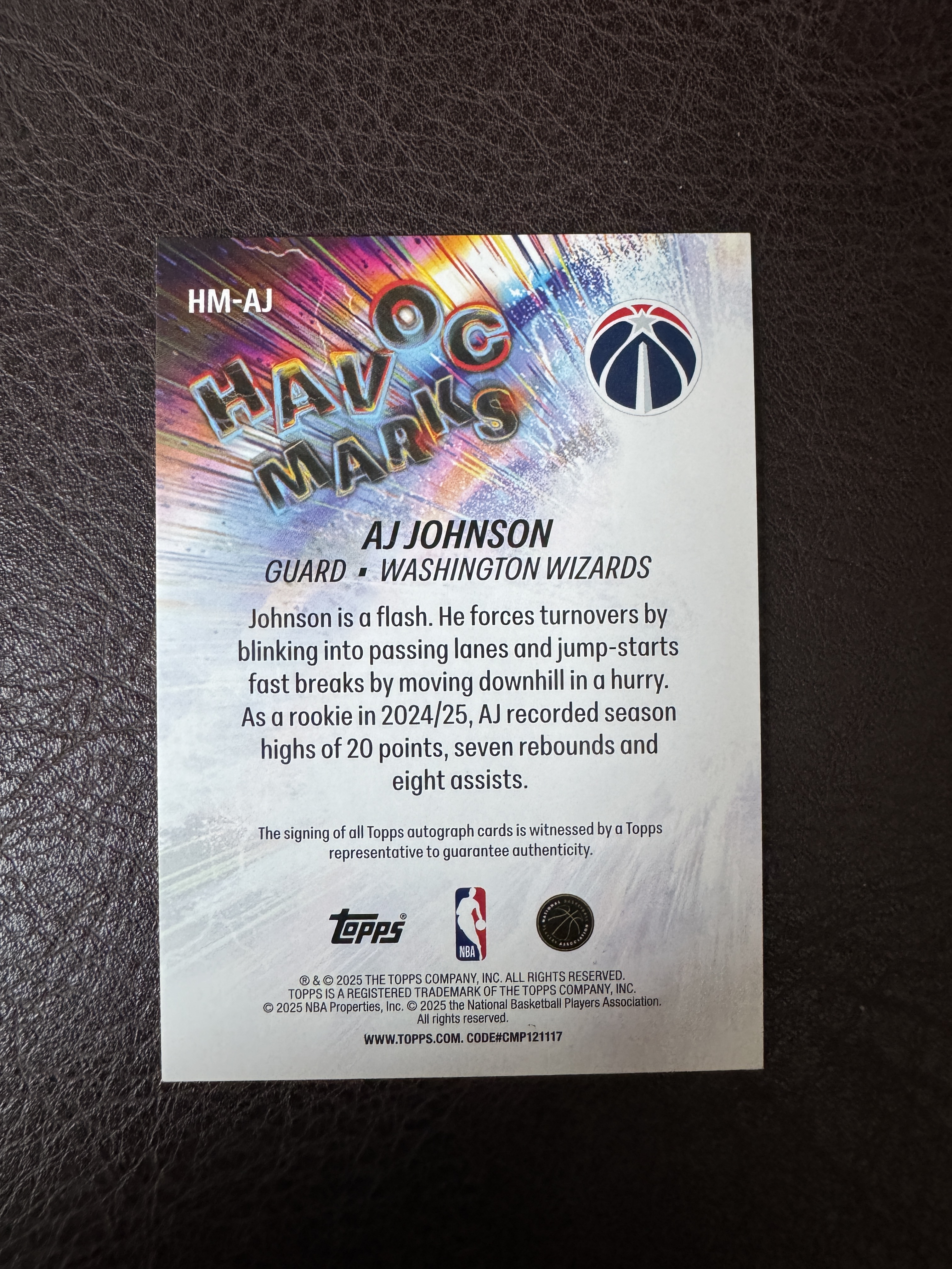 2025 Topps flagship AJ Johnson 狂潮印记签 AJ 约翰逊 奇才 签字 绿折 87/99编 卡品如图