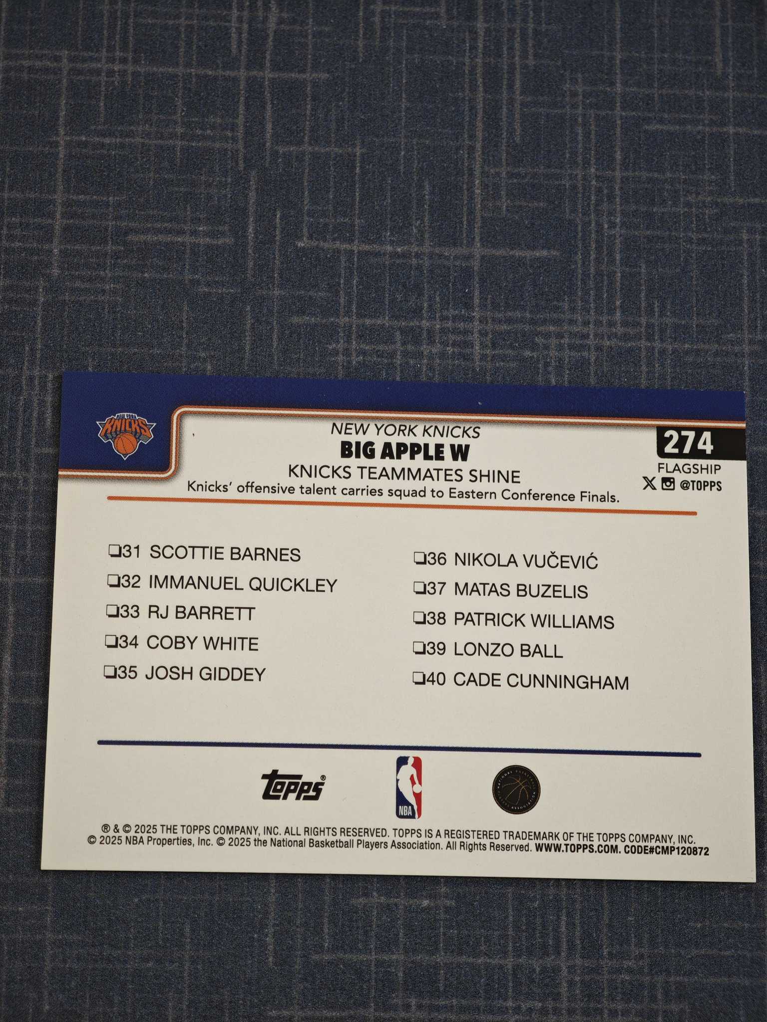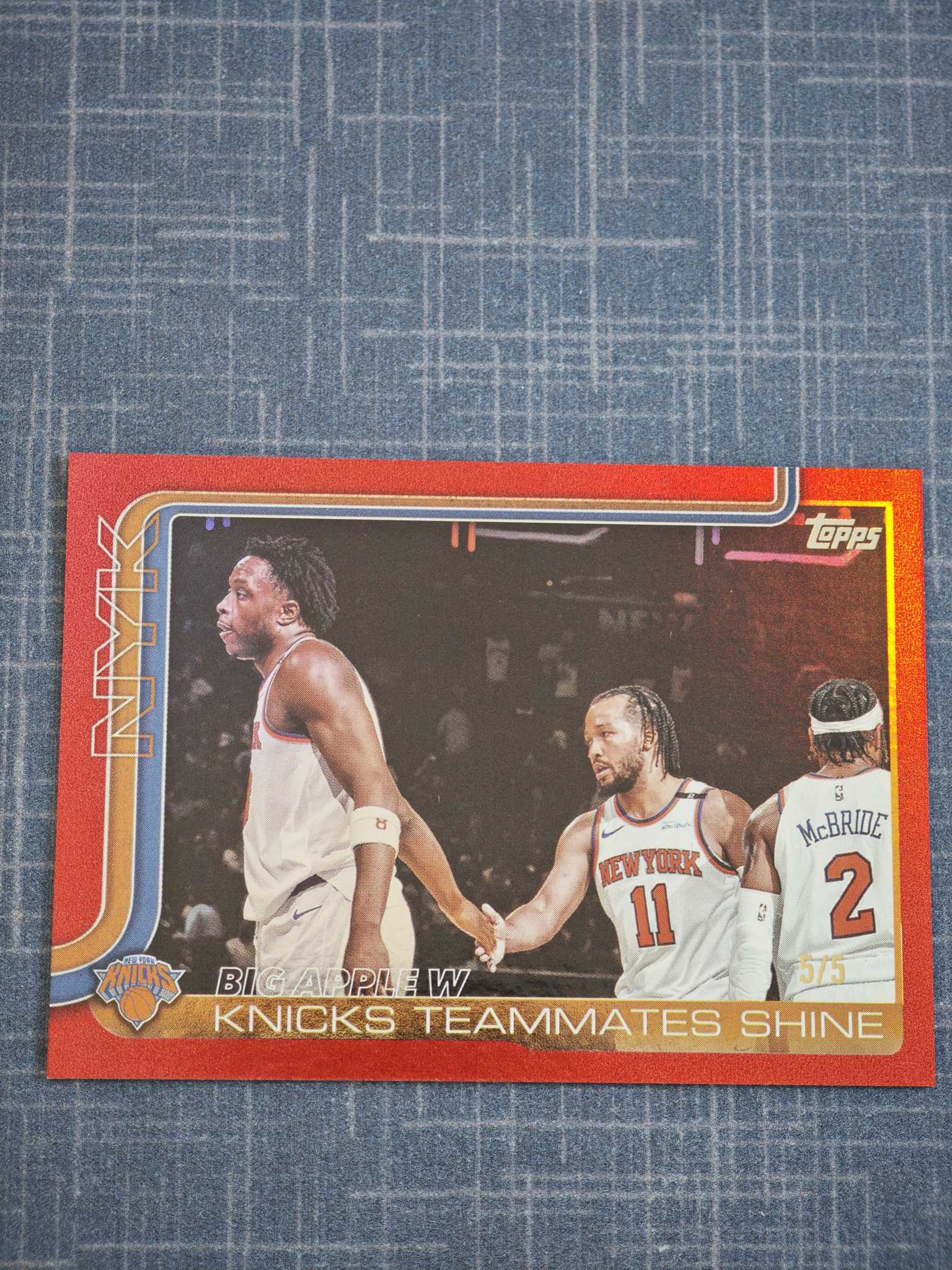 2025-26 Topps Flagship Jalen Brunson 【小灰机】尼克斯 杰伦 布伦森 麦克布莱德 大头 球队base 多人 5/5编 红折 卡品微瑕如图 老Q