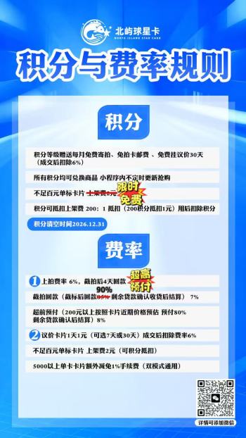 (2)付款:付款默认发货!竞拍成功后请于【卡淘新规3天内付款】,超过3天不付款必投诉封号!买卡皆为自愿出价,不要讲拍错了等情况!竞拍成功后不接受任何理由的弃标和发布点赔偿!所有拍品不支持直接上拍等其他后续服务。
