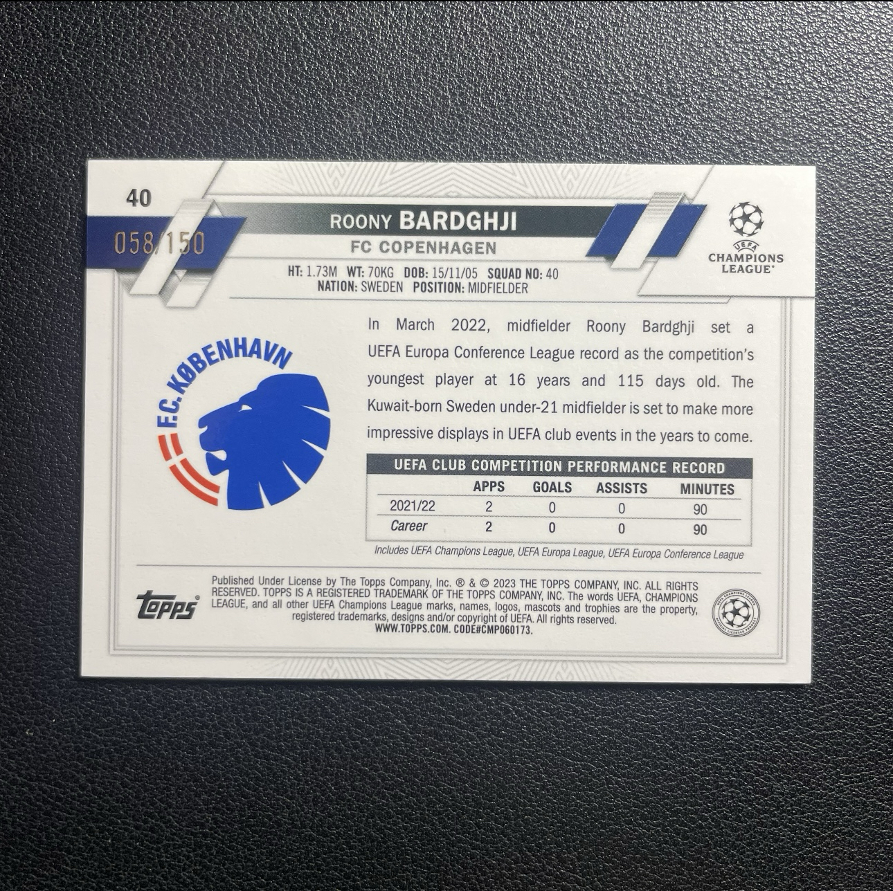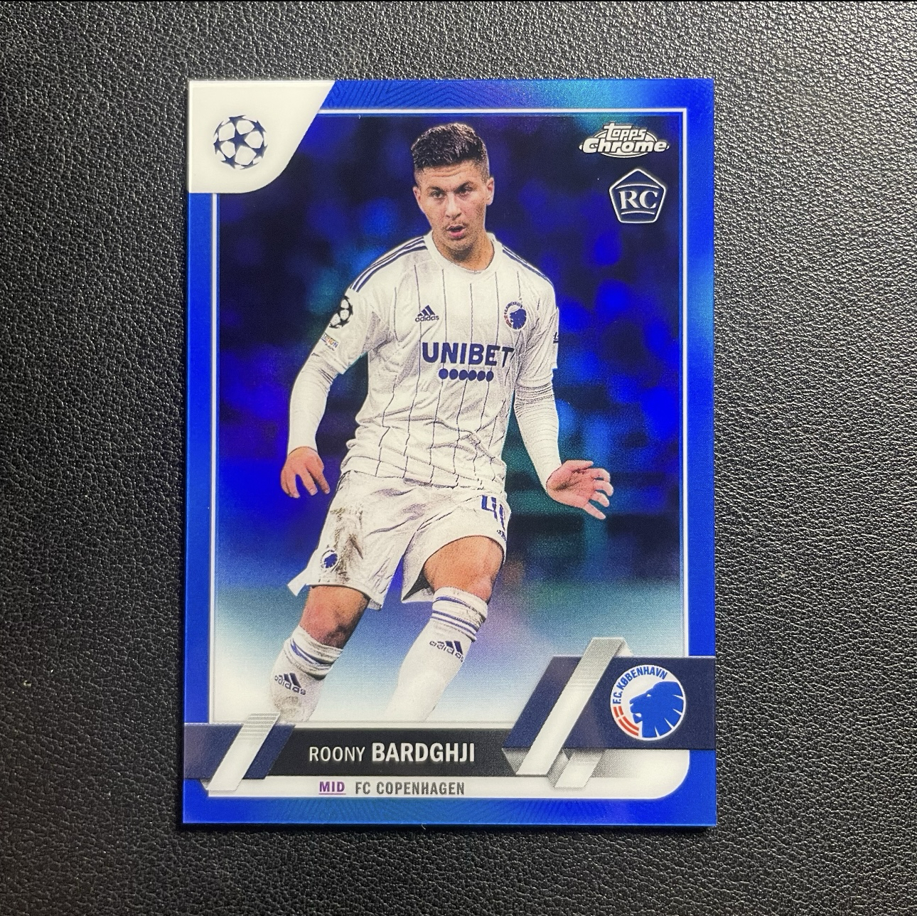 2022-23 Topps Chrome Roony Bardghji RC 欧冠 TC 哥本哈根 巴萨 巴尔德吉 新秀 058/150编 正蓝折 蓝配蓝 稀少 未来可期 投资凑套收藏 卡品如图