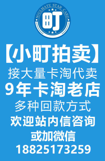 广东省内10元 省外15元(非偏远)享受顺丰速运(陆运)只发顺丰!目前开放累计 必须先确认收货完成订单 累计 期限为1个月(超过累计期限未清理累计 如出现卡品瑕疵或丢失问题 本店一概不负责 由于发货量较大 如超过期限不一定都能及时提醒 还请买家到期自行联系清理!)卡品如图,边角有白属于通行品,如有疑问请直接私聊我提供多角度大图。是否包含卡具以图片和描述为准,劫镖后请在72小时内付款,拍卖结束后3天内未款视为鸽子处理,直接拉黑+投诉封号处理!套卡、盒卡、散包、油画大卡由于特殊性,一旦售出将不退不换;PS:(偏远地区:黑龙江 甘肃 内蒙 宁夏 吉林 青海 快递统一18元!西藏 新疆 统一20元!港澳台只可顺丰到付 到付可能存在包装或箱子等额外费用 请以实际到付价格为准)价格高的建议顺丰到付(空运)+保价!价值高于2000的 仅留言“顺丰到付”一律发顺丰空运到付! 如出现丢失情况我会协助买家与快递协商赔付(丢件属于快递责任 本人不负责赔付)1个账号不能给多人发货,多个账号也不能合并发货!只按卡淘默认地址发货,如需更改地址请在付款页面上方进行更改!