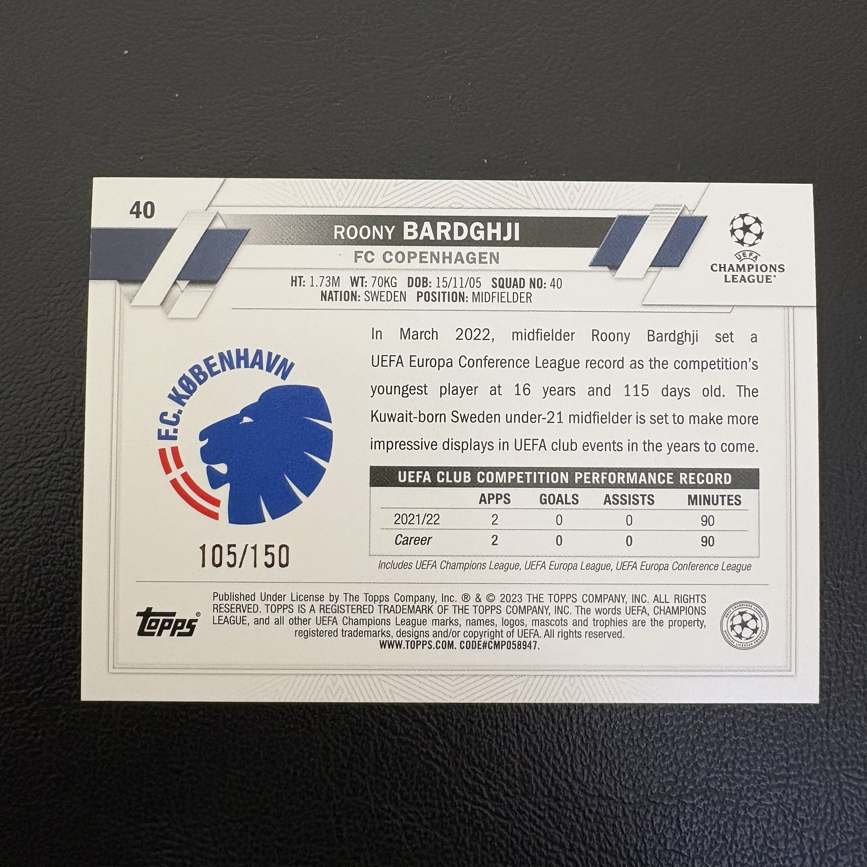 2022-23 Topps Chrome Roony Bardghji RC 欧冠 碧玉 哥本哈根 巴萨 巴尔德吉 新秀 RC /150编 印花折 红折 稀少 未来可期 投资凑套收藏 卡品如图